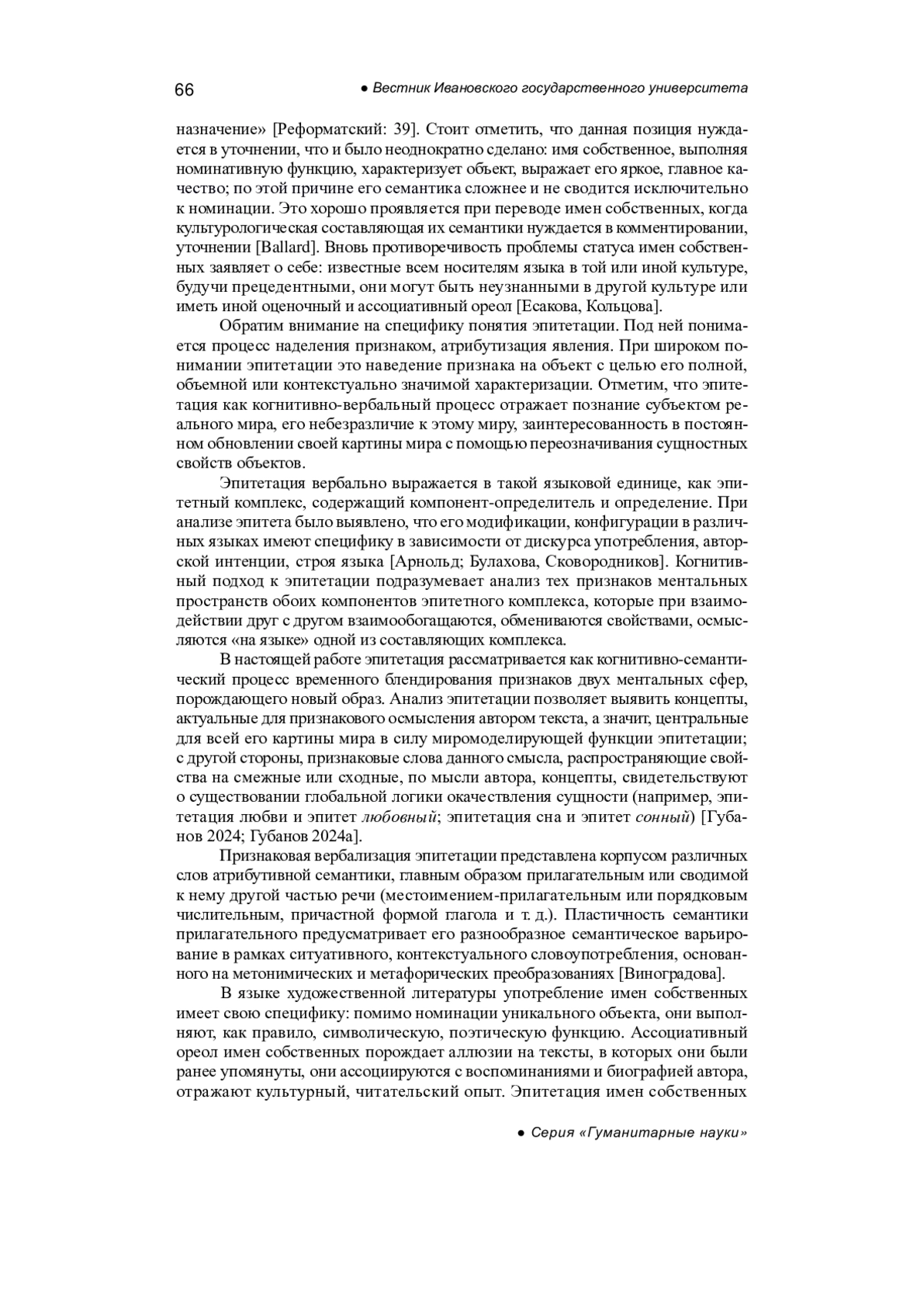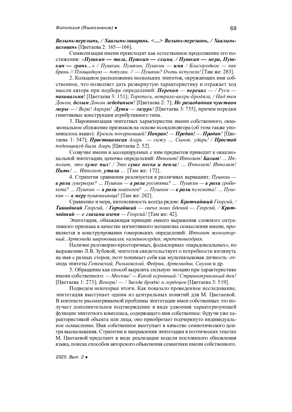 ГУБАНОВ С. А. ЭПИТЕТАЦИЯ ИМЕНИ СОБСТВЕННОГО В ПОЭЗИИ М. ЦВЕТАЕВОЙ // ВЕСТНИК ИВАНОВСКОГО ГОСУДАРСТВЕННОГО УНИВЕРСИТЕТА. СЕРИЯ: ГУМАНИТАРНЫЕ НАУКИ. 2025. № 2
