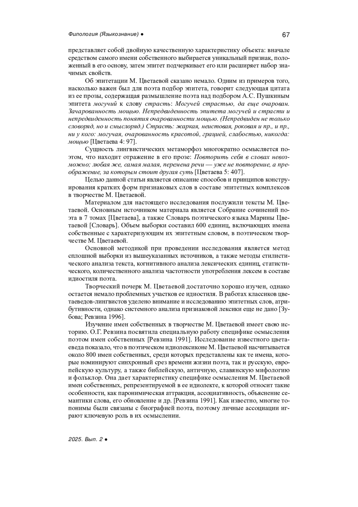 Статья: ЭПИТЕТАЦИЯ ИМЕНИ СОБСТВЕННОГО В ПОЭЗИИ М. ЦВЕТАЕВОЙ (2025)