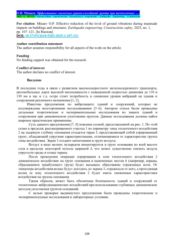 МИНАЕВ О. П. ЭФФЕКТИВНОЕ СНИЖЕНИЕ УРОВНЯ КОЛЕБАНИЙ ГРУНТА ПРИ ТЕХНОГЕННЫХ ВОЗДЕЙСТВИЯХ НА ЗДАНИЯ И СООРУЖЕНИЯ // СЕЙСМОСТОЙКОЕ СТРОИТЕЛЬСТВО. БЕЗОПАСНОСТЬ СООРУЖЕНИЙ. 2025. № 1
