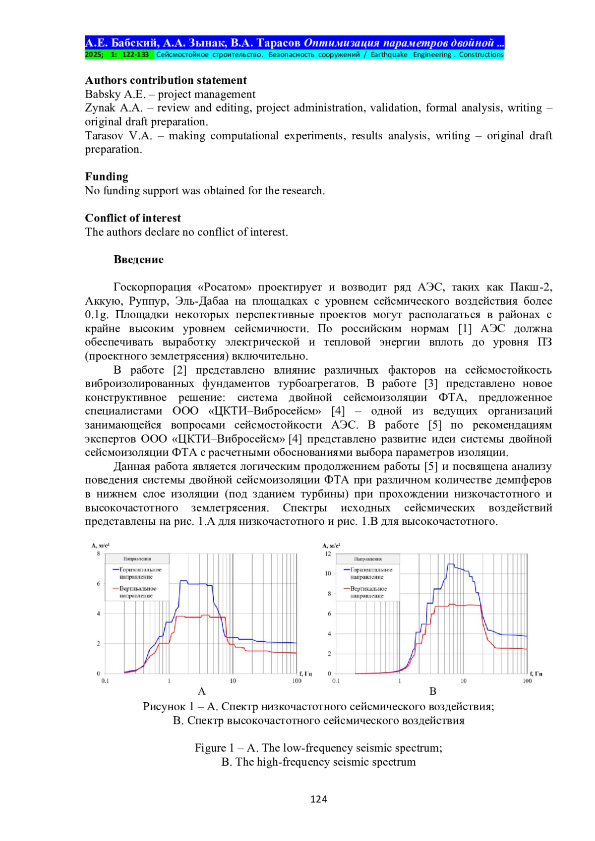 Статья: Оптимизация параметров двойной сейсмоизоляции фундаментов турбоагрегатов (2025)