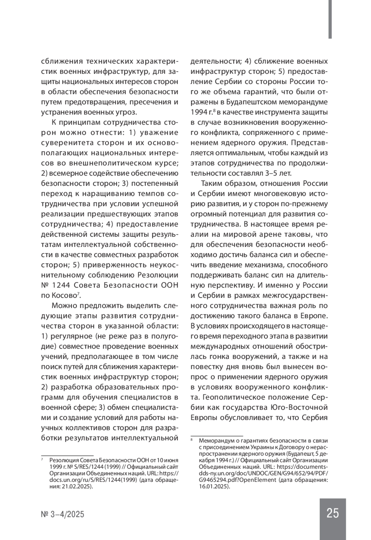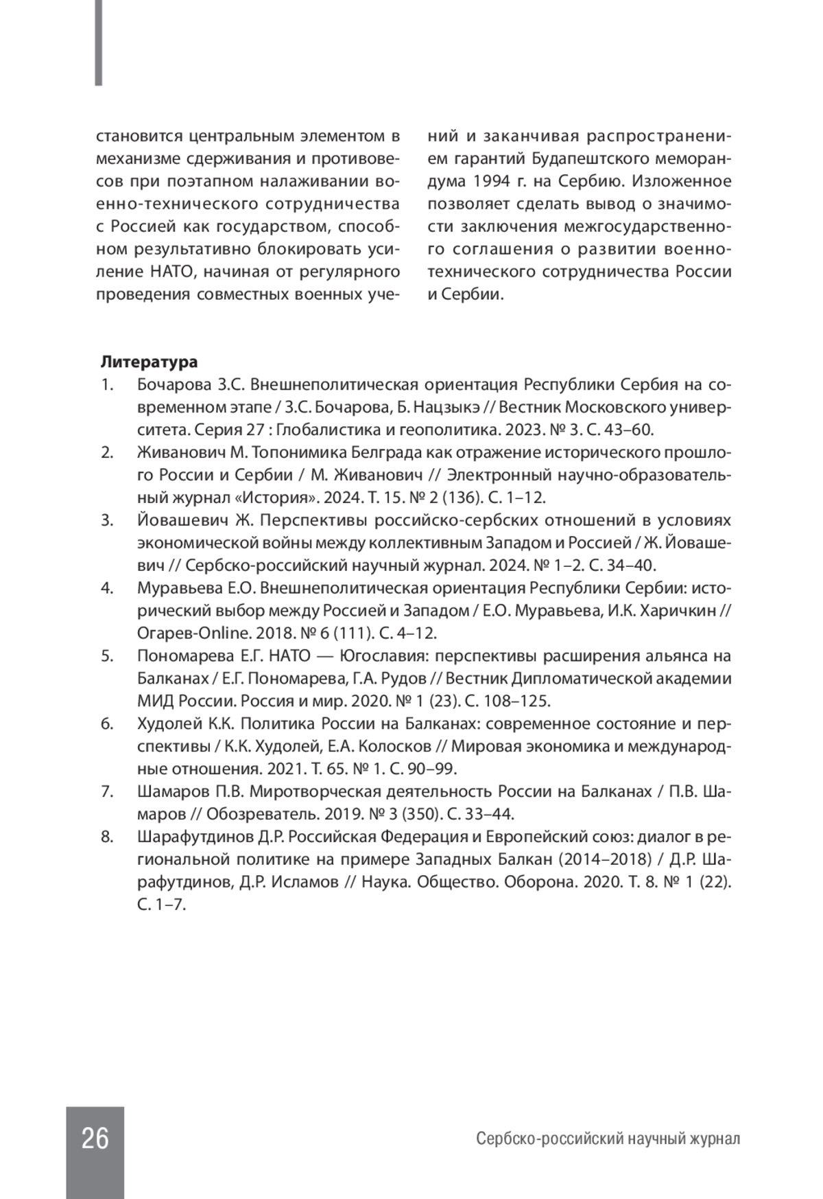Проблема противодействия гонке вооружений и усилению международной напряженности обрела особую актуальность в условиях того, что вновь возник вопрос о применении ядерного оружия в условиях вооруженного конфликта и, соответственно, вопрос о достижении паритета позиций противодействующих сторон для предотвращения использования такого оружия. Установлено, что развитие диалога России и Сербии в военно-технической сфере с учетом геополитического положения Сербии и мощи России сможет обеспечить противодействие усилению позиций НАТО, что послужит основой для достижения баланса сил на Евразийском континенте и предотвращения усиления напряженности. Определена значимость поэтапного налаживания сотрудничества сторон для сохранения взаимного доверия и интереса к постепенному переходу к более тесному диалогу для достижения национальных интересов сторон: России — укрепления системы обеспечения безопасности, Сербии — достижения баланса в проводимом ею внешнеполитическом курсе. В результате проведения исследования автор приходит к выводу о значимости заключения межгосударственного соглашения России и Сербии о развитии военно-технического сотрудничества.