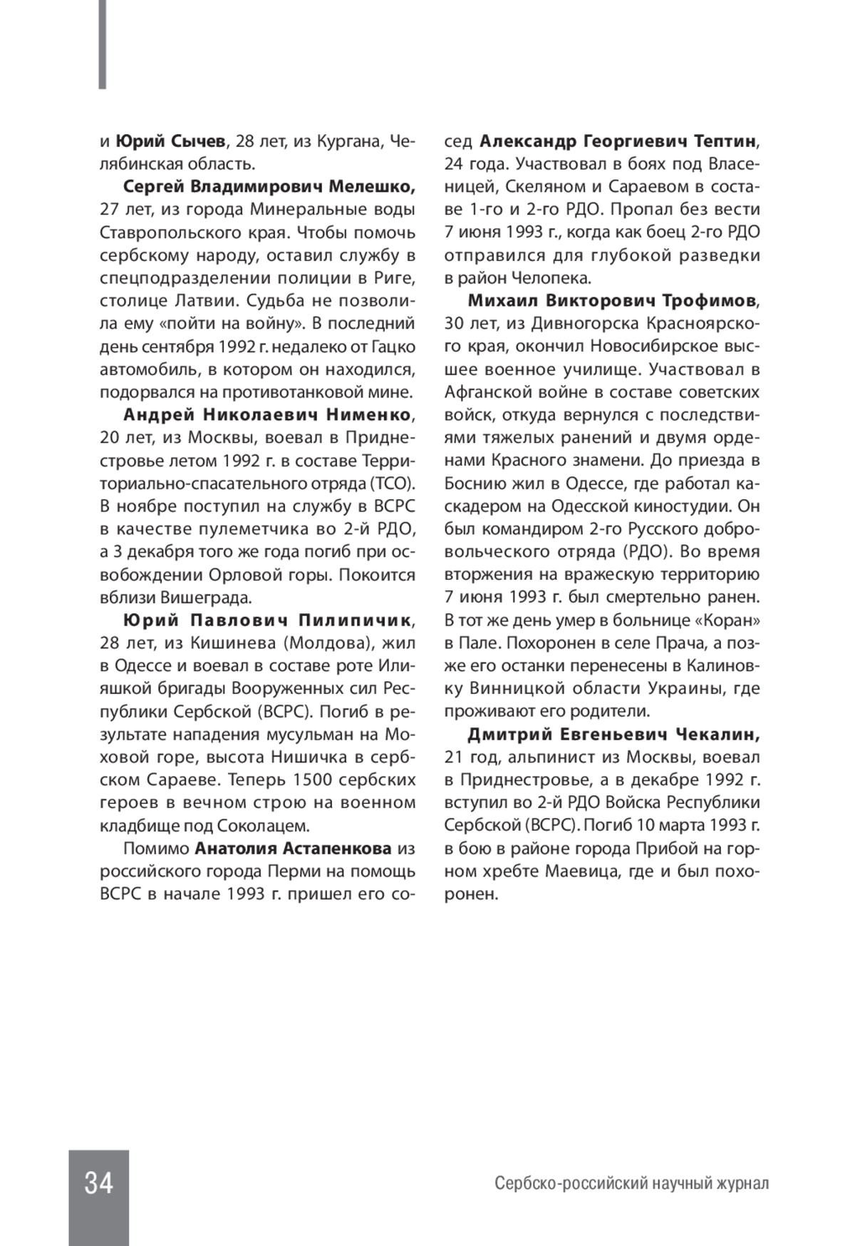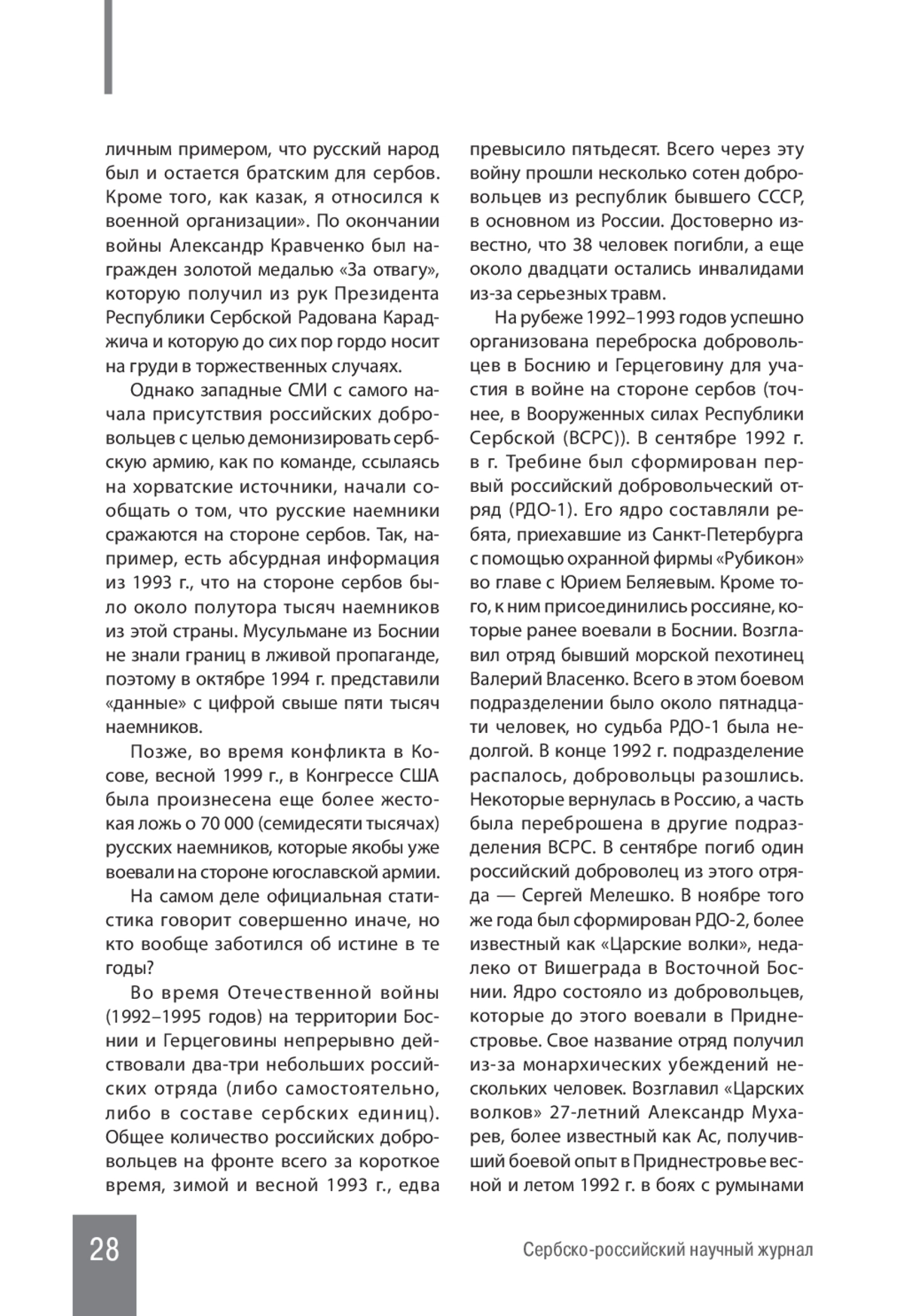 В статье рассматривается феномен российского добровольческого движения на территории бывшей Социалистической Федеративной Республики Югославия (СФРЮ) с начала 1990-х годов, акцентируя внимание на историко-культурной и патриотической значимости участия российских добровольцев в вооруженных конфликтах на стороне сербов. Основная мысль материала заключается в том, что, несмотря на международную изоляцию Сербии и негативное освещение ее действий в западной прессе, российские добровольцы откликнулись на призыв братского народа, что стало символом единства и солидарности между русским и сербским народами.