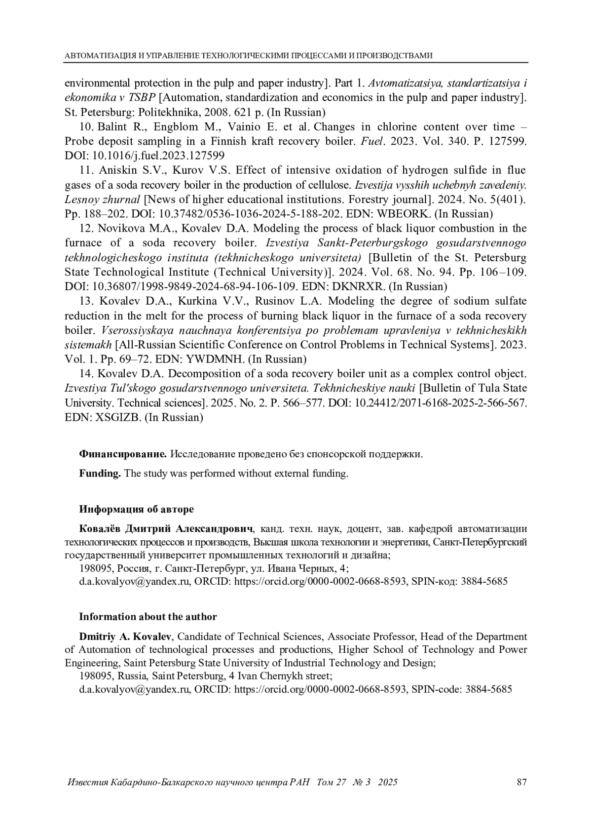 14. Ковалёв Д. А. Декомпозиция содорегенерационного котлоагрегата как сложного объекта управления // Известия Тульского государственного университета. Технические науки. 2025. № 2. С. 566-577. DOI: 10.24412/2071-6168-2025-2-566-567 EDN: XSGIZB