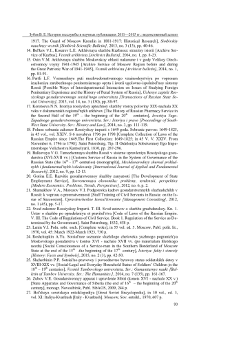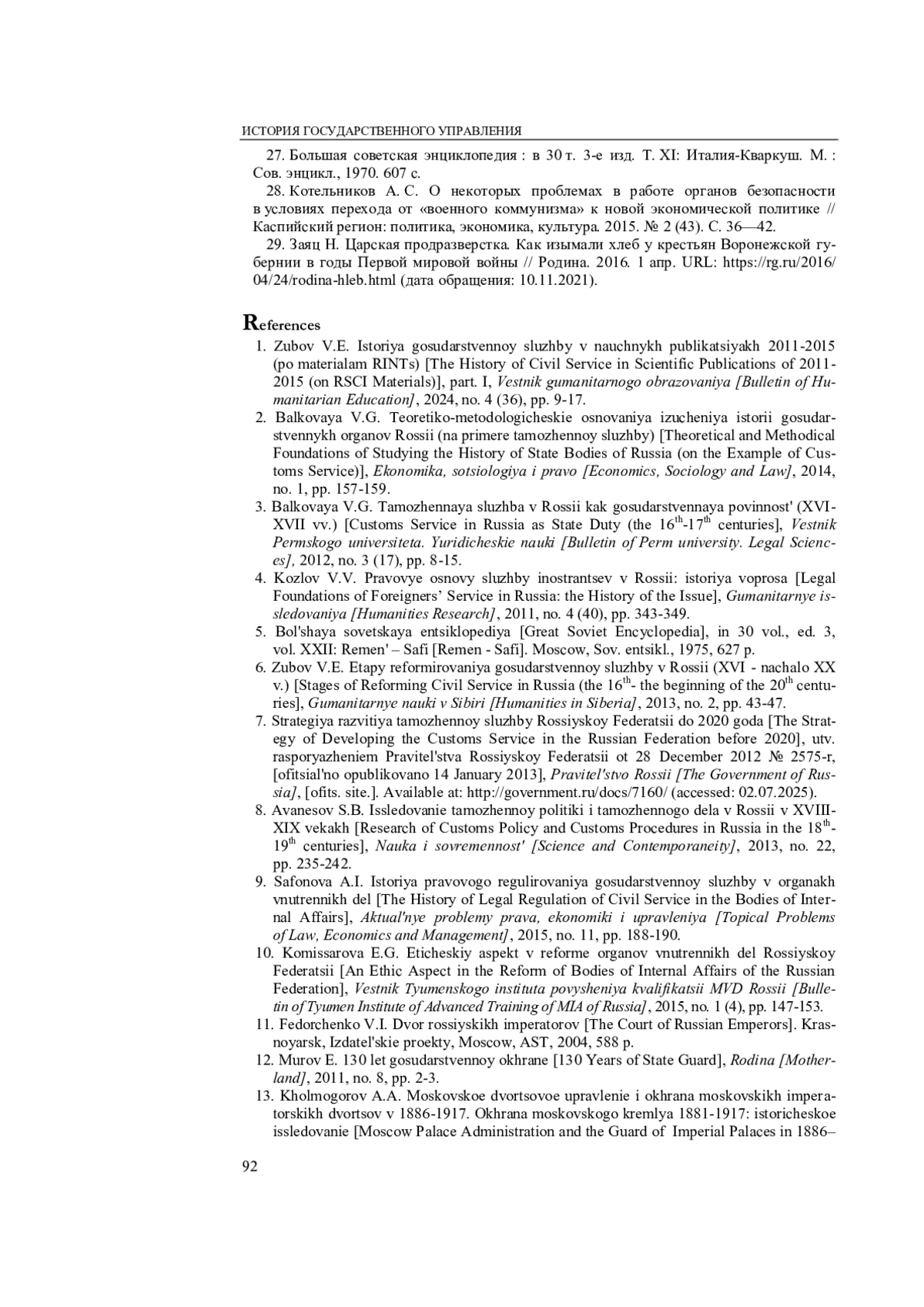 1. Зубов В. Е. История государственной службы в научных публикациях 2011— 2015 гг. (по материалам РИНЦ). Ч. I // Вестник гуманитарного образования. 2024. № 4 (36). С. 9—17.