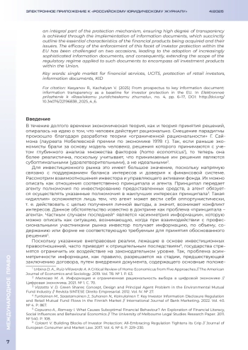 11. Jager C. Key Information Documents about Financial Products: Something New Under the Sun? The Evolution of Mandatory Information Documents and Policy in the EU // Journal of European Consumer and Market Law. 2019. Vol. 8. № 6. P. 237-243.