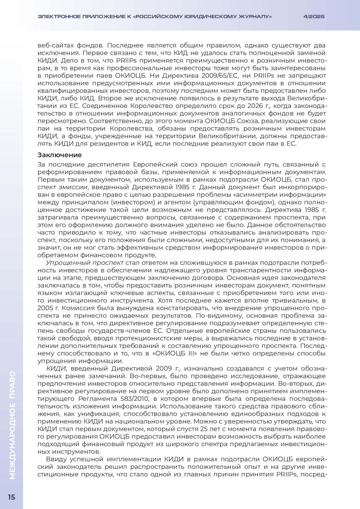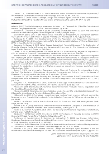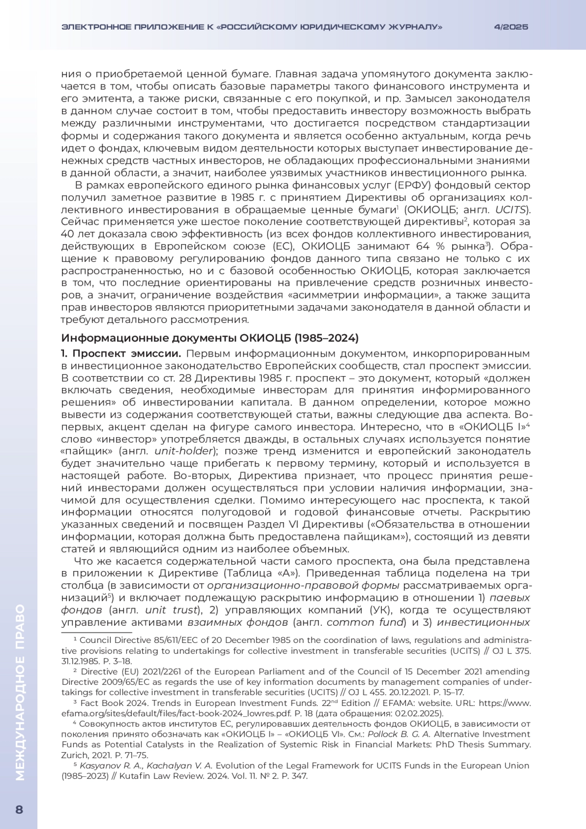 13. KasyanovR. A., Kachalyan V. A. Evolution of the Legal Framework for UCITS Funds in the European Union (1985-2023) // Kutafin Law Review. 2024. Vol. 11. № 2. P. 325-369. EDN: FMAKQF
