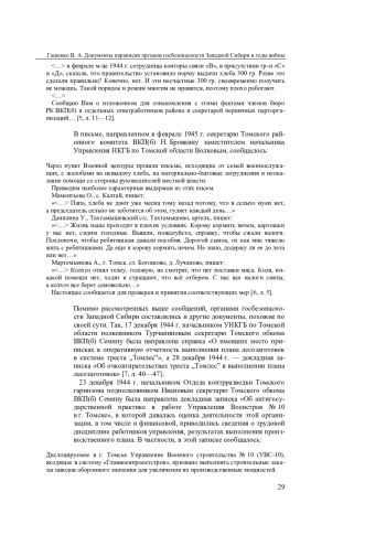 В статье освещена повседневная жизнь советских немцев, мобилизованных для трудовой повинности в годы Великой Отечественной войны, в Новосибирске и Новосибирской области. Несмотря на особый статус данной категории граждан и принудительный труд, российские немцы вносили свой вклад в общую Победу над врагом наряду с другими жителями страны. К числу основных тем, затронутых автором, относится прием и размещение депортированных немцев из центральной части СССР, бытовые условия немецких семей в Новосибирске, их участие в производственной и трудовой деятельности. Уделяется внимание процессу формирования немецких трудовых поселков в черте города и повседневной жизни в них. Помимо архивных документов, используются фотоматериалы, позволяющие реконструировать отдельные фрагменты жизни немцев. В лево-бережной части Новосибирска до настоящего времени компактно проживают многие их потомки. Понимая важность сохранения исторической памяти о судьбах своих предков, молодые российские немцы в настоящее время ведут работу по поиску, сбору и систематизации материалов из разных географических точек мира для создания Книги памяти немцев Новосибирской области. В научный оборот вводятся малоизвестные архивные источники, воспоминания немцев и иные материалы из личных дел немцев-спецпоселенцев.