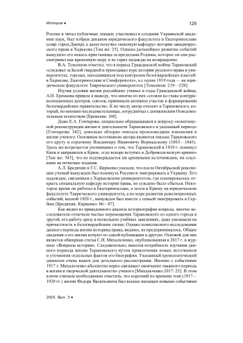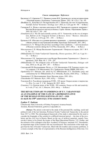 Статья: РЕВОЛЮЦИОННЫЕ СКИТАНИЯ Ф. В. ТАРАНОВСКОГО КАК ПРИМЕР СУДЬБЫ ПРЕДСТАВИТЕЛЯ РУССКОЙ ИНТЕЛЛИГЕНЦИИ В 1917-1920 ГГ. (К 150-ЛЕТИЮ СО ДНЯ РОЖДЕНИЯ УЧЕНОГО) (2025)