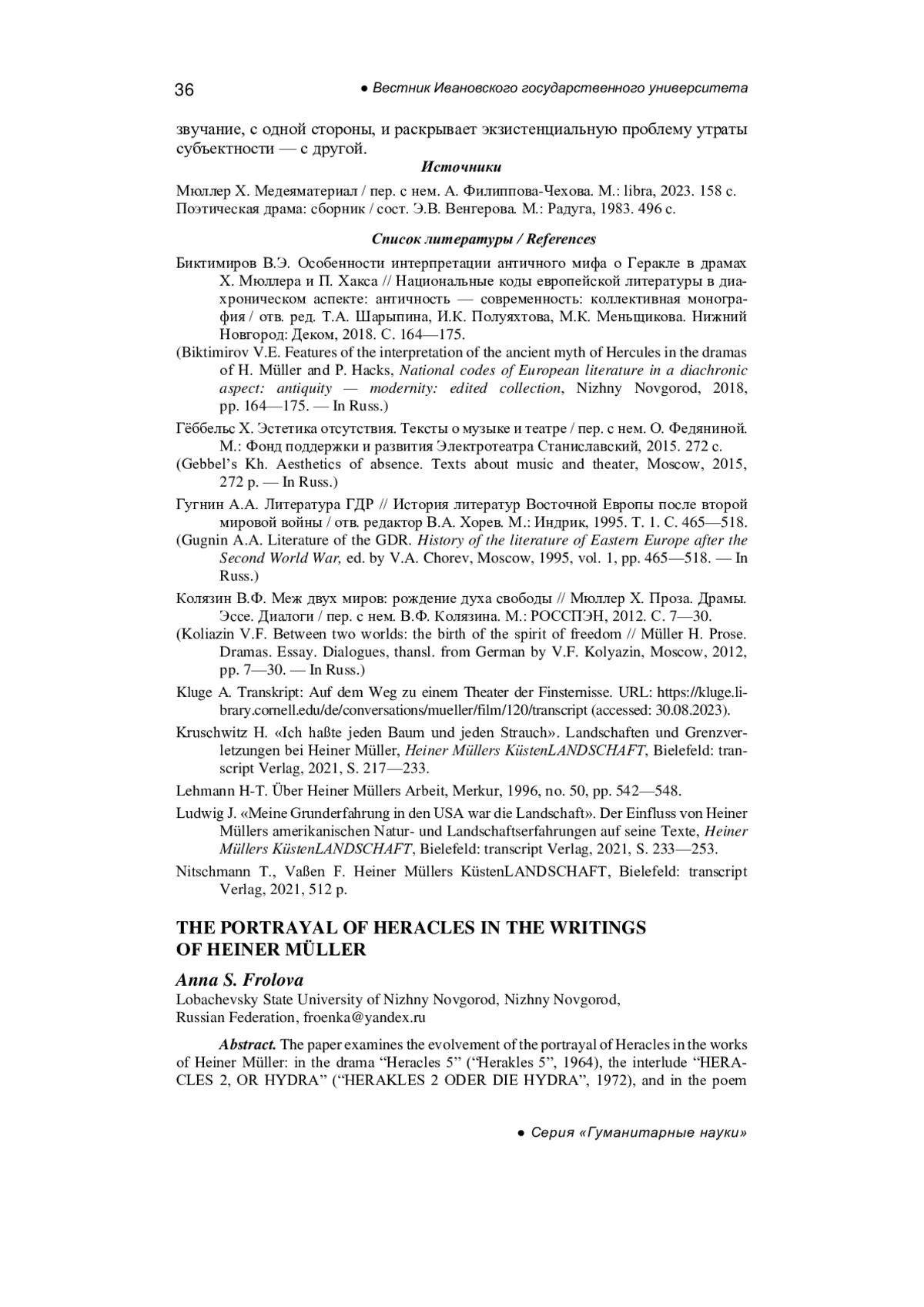 3. Биктимиров В.Э. Особенности интерпретации античного мифа о Геракле в драмах Х. Мюллера и П. Хакса // Национальные коды европейской литературы в диахроническом аспекте: античность - современность: коллективная монография / отв. ред. Т.А. Шарыпина, И.К. Полуяхтова, М.К. Меньщикова. Нижний Новгород: Деком, 2018. С. 164-175. EDN: NSLXEF