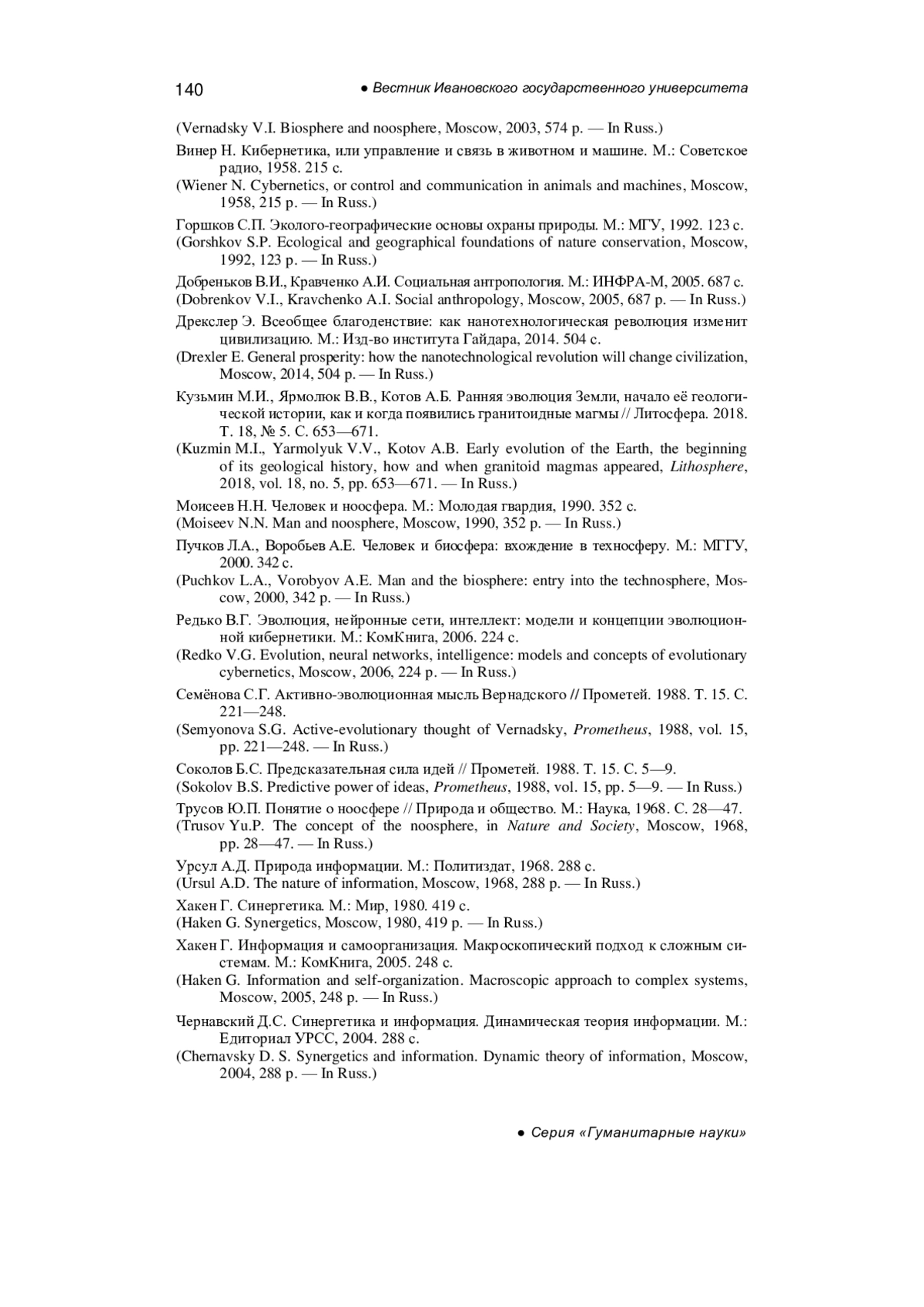 Semyonova S.G. Active-evolutionary thought of Vernadsky, Prometheus, 1988, vol. 15, pp. 221-248. - In Russ.