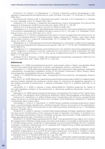 2. Бессарабов В. Г. Законотворческая деятельность прокуратуры России (история, состояние и перспективы): моногр. М.: Юрлитинформ, 2021. 248 с. EDN: BVPBJX