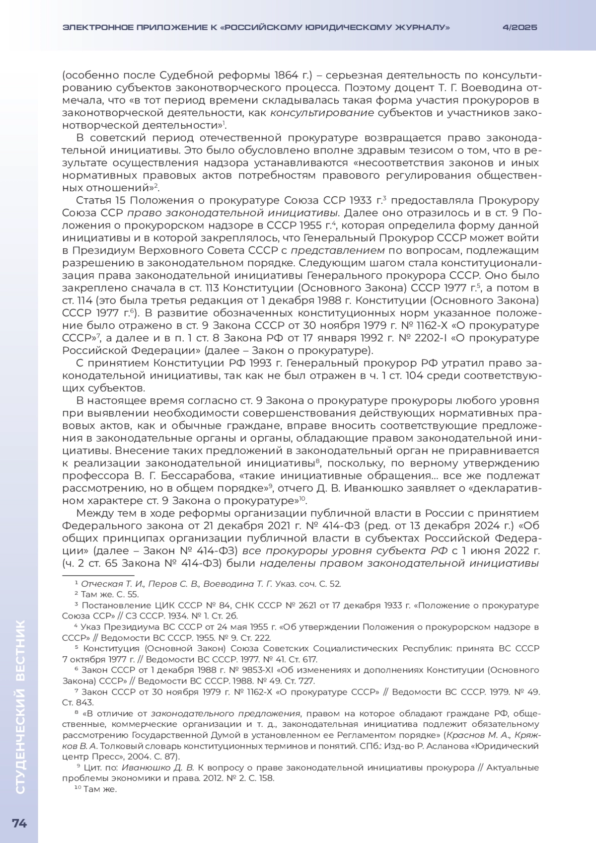 17. Шобухин В. Ю. К вопросу о праве законодательной инициативы прокурора // Вестник Омского университета. Сер.: Право. 2009. № 4. С. 230-232.
