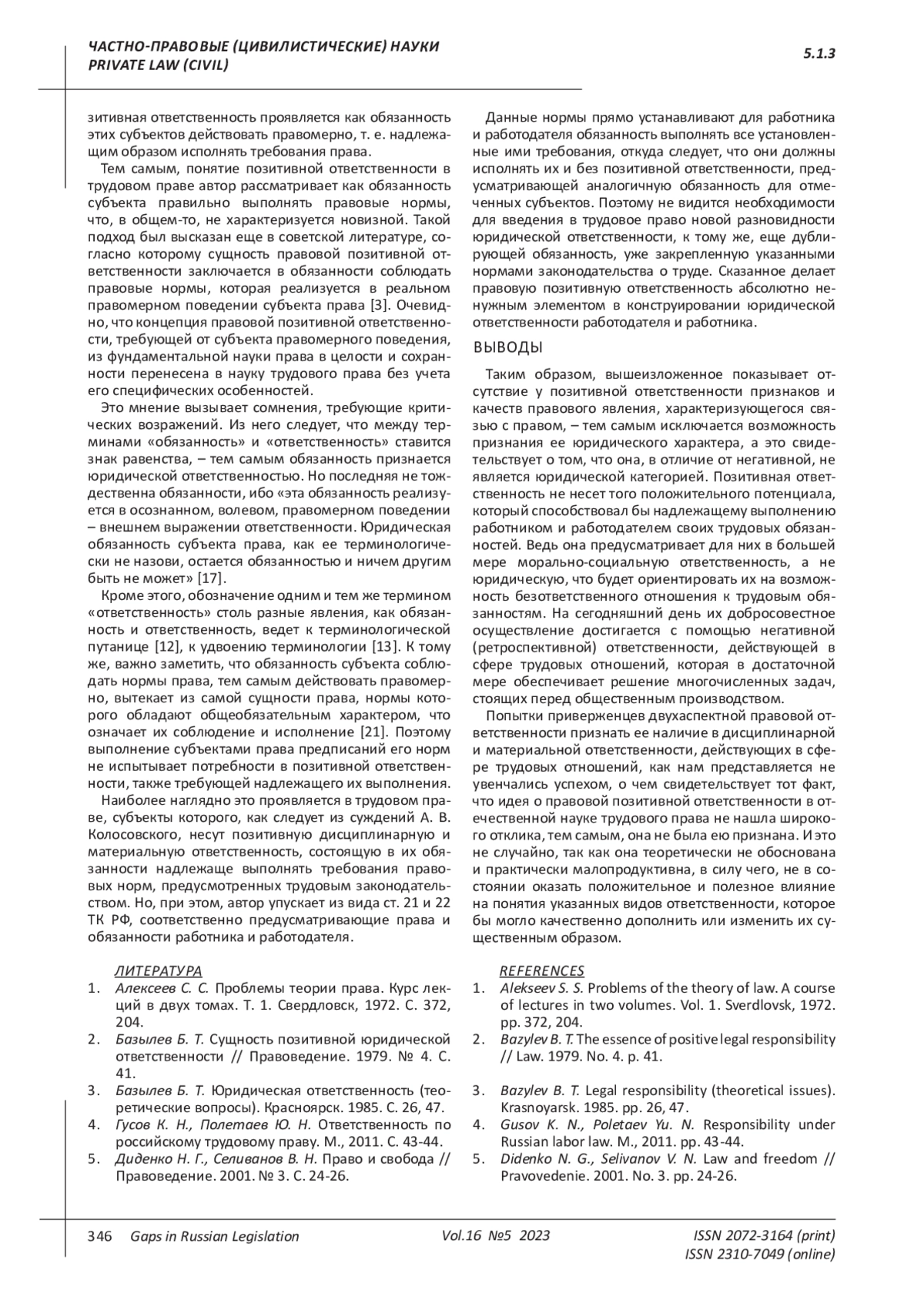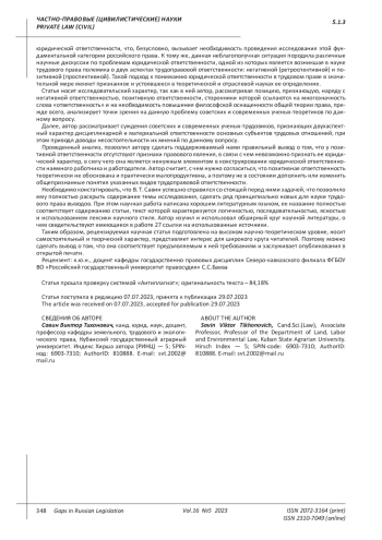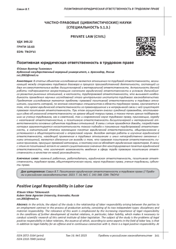 Статья: ПОЗИТИВНАЯ ЮРИДИЧЕСКАЯ ОТВЕТСТВЕННОСТЬ В ТРУДОВОМ ПРАВЕ (2023)
