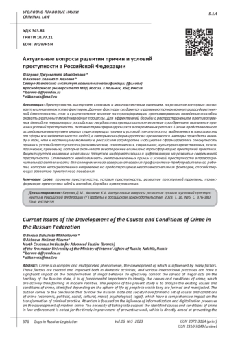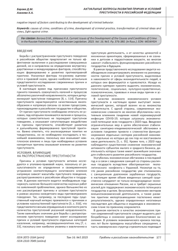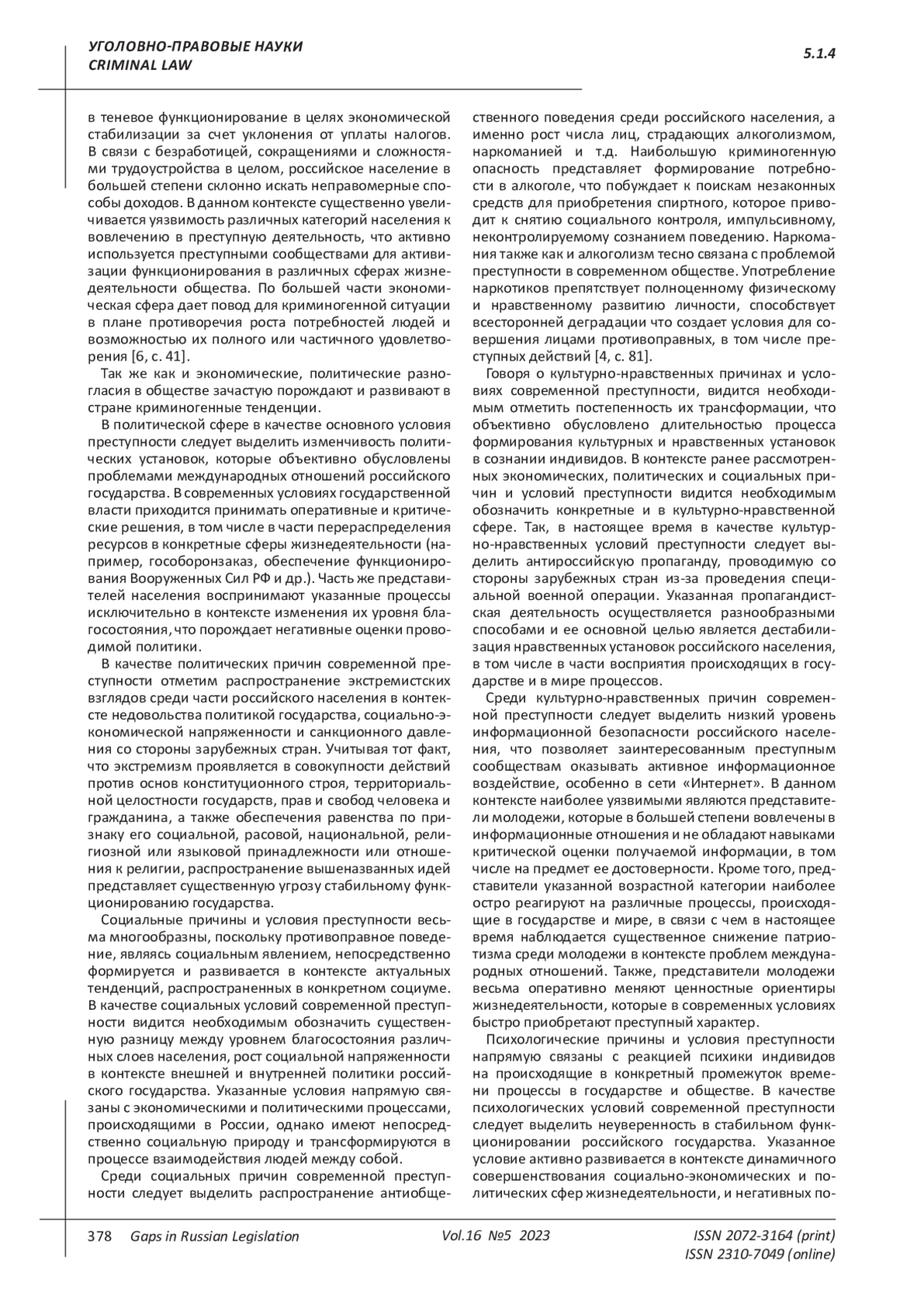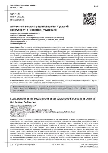 Статья: АКТУАЛЬНЫЕ ВОПРОСЫ РАЗВИТИЯ ПРИЧИН И УСЛОВИЙ ПРЕСТУПНОСТИ В РОССИЙСКОЙ ФЕДЕРАЦИИ (2023)