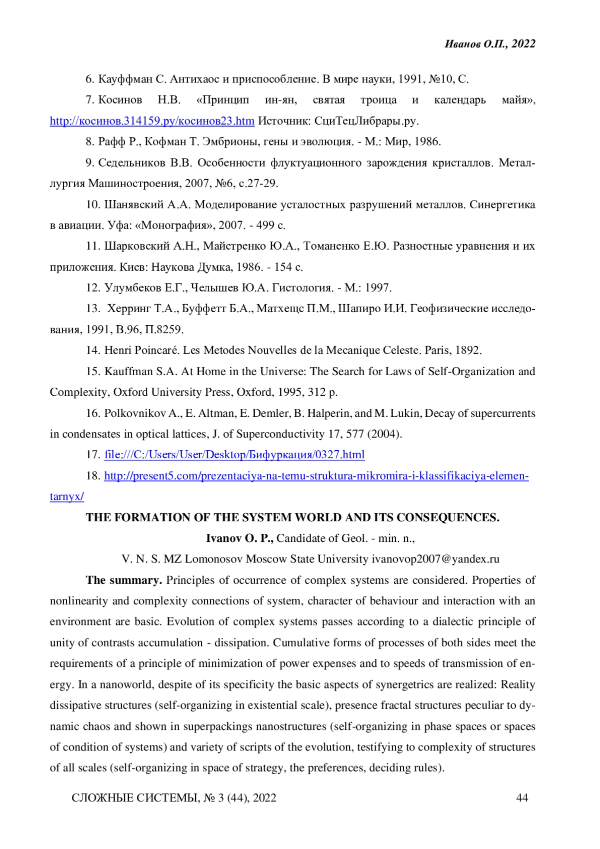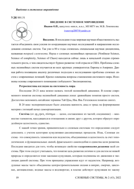 В последние годы мировая научная общественность пытается объединить свои усилия по координации научных исследований в направлении исследования сложных систем. Так уже в 80-е годы сложилась специальная научная дисциплина, названная теорией сложности. Наука о сложных нелинейных процессах (Nonlinear Science, Science of complexity, Science of Chaos) находится сейчас лишь в начальной стадии стремительного роста, о чем свидетельствует бурное развитие этой отрасли в США. Проблемы сложных нелинейных систем изучаются во всех крупных университетах Европы и Америки. Данная работа посвящена анализу различных подходов к исследованию проблемы сложных систем с современных позиций. Кратко освещены вопросы становления системного мира. Изложены основы современного понимания глобального Эволюционизма.