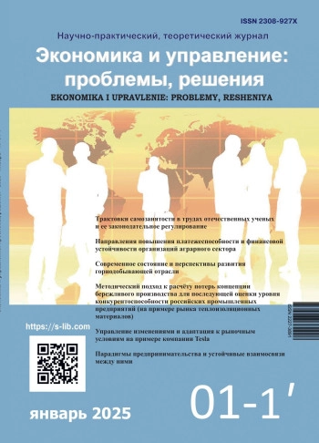 В данной статье предлагается универсальный методический подход к расчёту потерь концепции бережливого производства для последующего использования в оценке уровня конкурентоспособности российских промышленных предприятий (на примере рынка теплоизоляционных материалов). Проведённый обзор литературных источников подтверждает актуальность научной проблемы оценки уровня конкурентоспособности российских промышленных предприятий на основе концепции бережливого производства. Целью данной работы является разработка универсального методического подхода к расчёту потерь концепции бережливого производства. Научная новизна представлена формулами для расчёта экономической оценки каждого из семи видов производственных потерь концепции бережливого производства и заключена в выражении величины потерь в относительном и абсолютном выражении, а также расчёте фактических и нормируемых потерь. Методологической основой исследования выступают общенаучные методы (анализ, синтез, сравнение, индукция), а также специальные методы экономических наук (экономико-статистический, структурно-функциональный, системный). Совокупность и сочетание данных методов адекватны заявленной цели исследования. Представленная работа вносит вклад в решение научного вопроса о способах оценки потерь бережливого производства как в относительном, так и в абсолютном выражении. Практическая значимость работы заключается в возможности применения апробированной авторской методики на предприятиях отрасли теплоизоляционных материалов и в других секторах экономики. В первую очередь данная работа представляет интерес для студентов экономических направлений и представителей менеджмента промышленных предприятий Российской Федерации. В качестве примеров для апробации взяты два предприятия, функционирующих на рынке теплоизоляционных материалов. Рассматриваемые предприятия функционируют в Центральном федеральном округе и выпускают один из наиболее востребованных сегодня в России видов утеплителя - каменную вату. В ходе проведённых на двух предприятиях работ каждый из семи видов потерь определялся по схожему алгоритму. Для примера представлен расчёт потерь от дефектов. Бережливое производство является инструментом, с помощью которого можно сформировать представление об уровне конкурентоспособности предприятия.