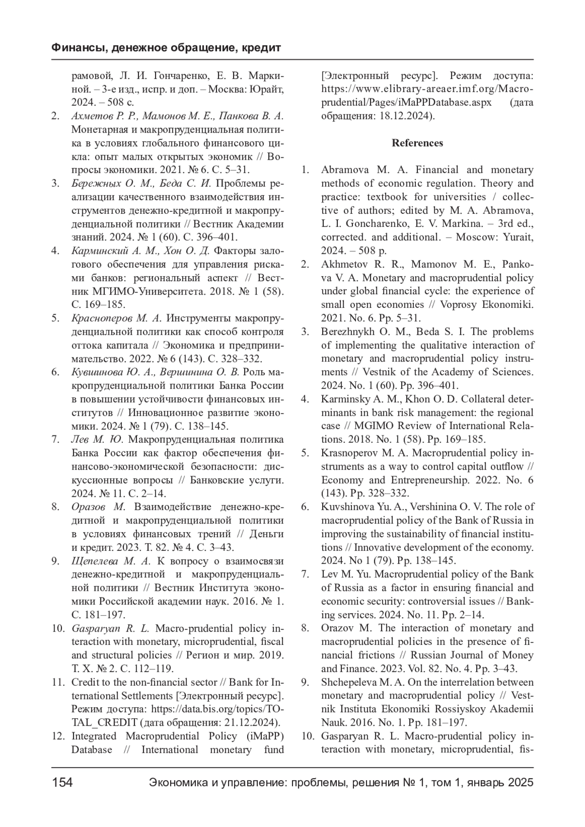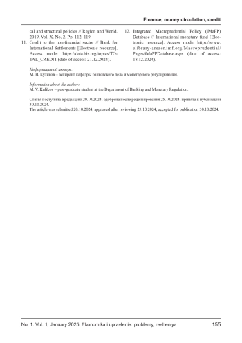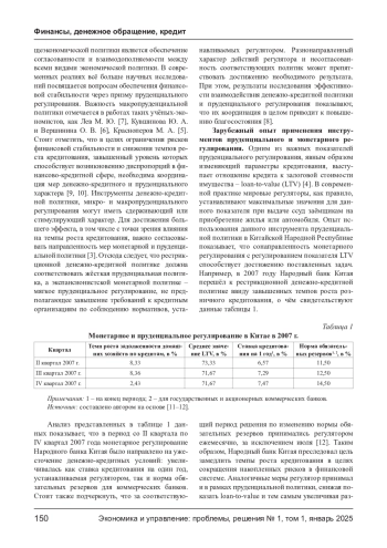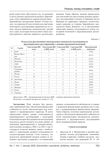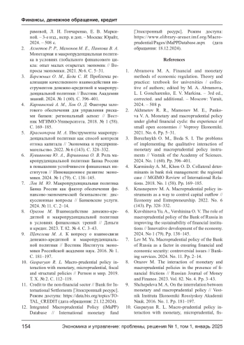 КУЛИКОВ М. В. ОЦЕНКА СОГЛАСОВАННОСТИ ПРУДЕНЦИАЛЬНОГО РЕГУЛИРОВАНИЯ С ДЕНЕЖНО-КРЕДИТНОЙ ПОЛИТИКОЙ // ЭКОНОМИКА И УПРАВЛЕНИЕ: ПРОБЛЕМЫ, РЕШЕНИЯ. 2025. ТОМ 1 № 1