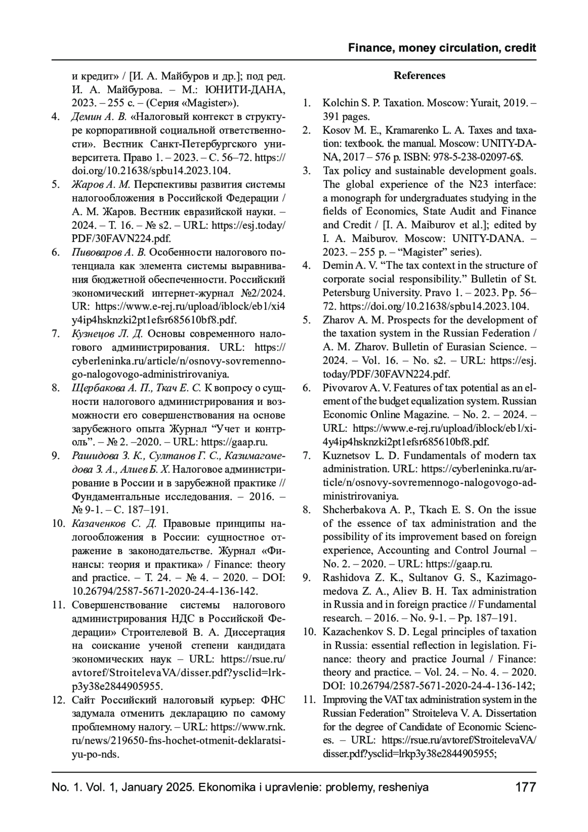 5. Жаров А. М. Перспективы развития системы налогообложения в Российской Федерации / А. М. Жаров. Вестник евразийской науки. - 2024. - Т. 16. - № s2. - URL: https://esj.today/PDF/30FAVN224.pdf.