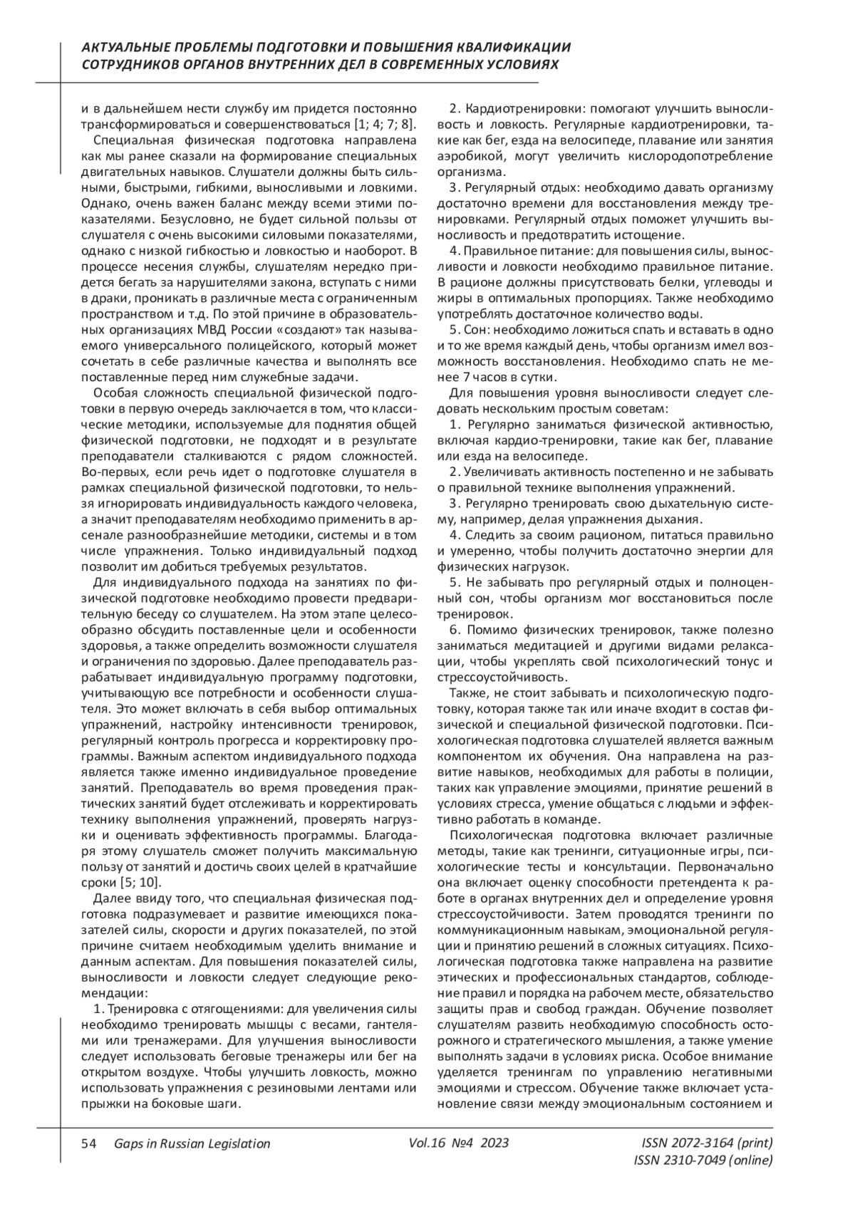 9. Ярославский М.А., Тхагалегов А.А. Профессионально-значимые физические качества сотрудников полиции: пути формирования и совершенствования // В сборнике: Инновации в науке и практике. Сборник трудов по материалам VI Всероссийского конкурса научно-исследовательских работ. Уфа, 2021. С. 40-45. EDN: EUXLHX