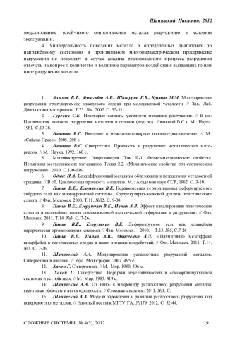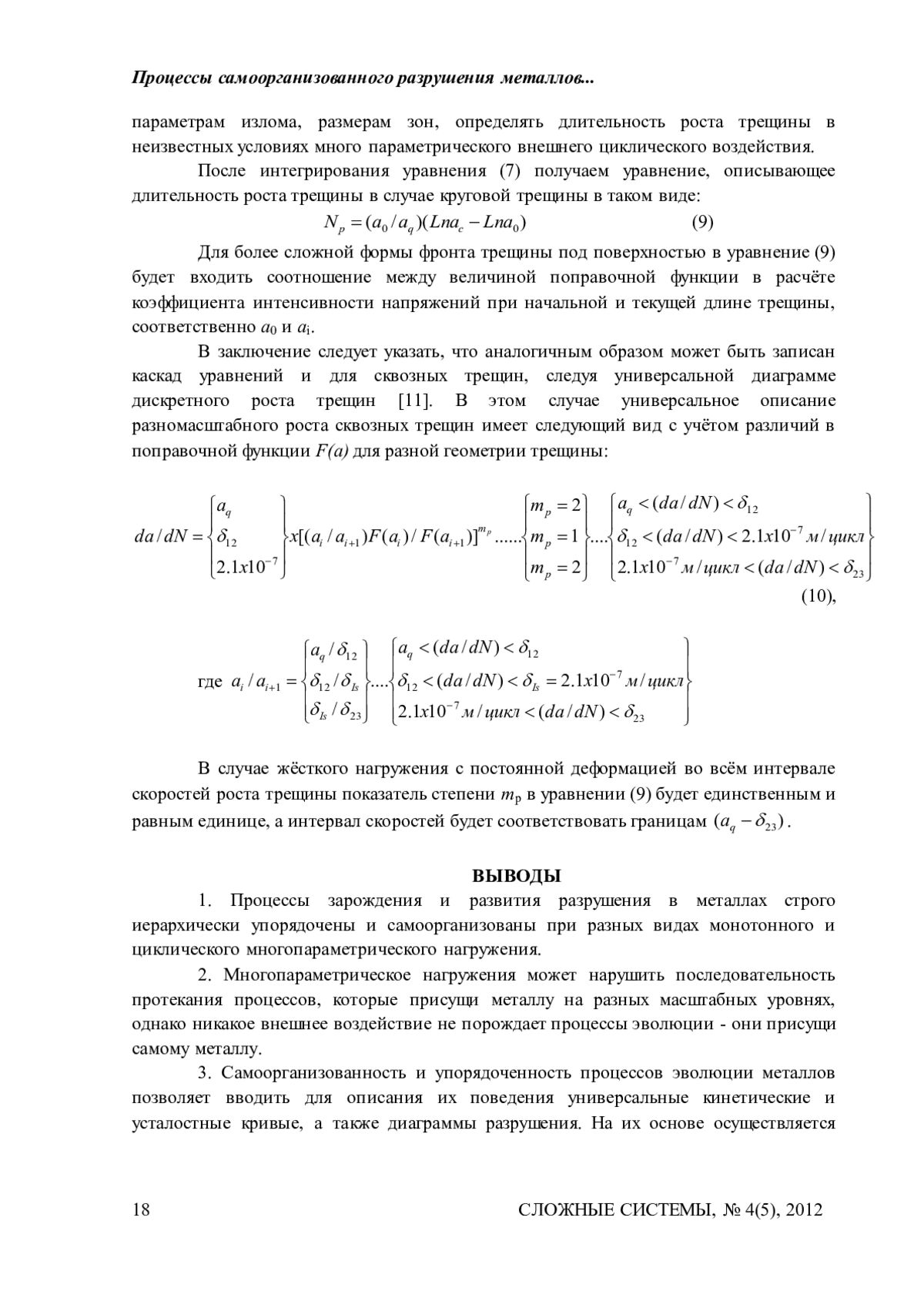 Статья: ПРОЦЕССЫ САМООРГАНИЗОВАННОГО РАЗРУШЕНИЯ МЕТАЛЛОВ ПРИМНОГОПАРАМЕТРИЧЕСКОМ НАГРУЖЕНИИ (2012)