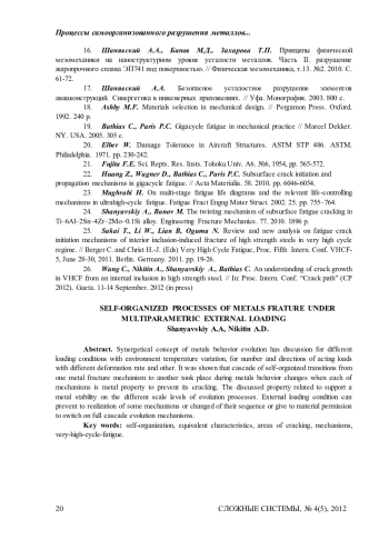 Ключевые фразы: самоорганизация, эквивалентные характеристики, области разрушения, механизмы, сверхмногоцикловая усталость