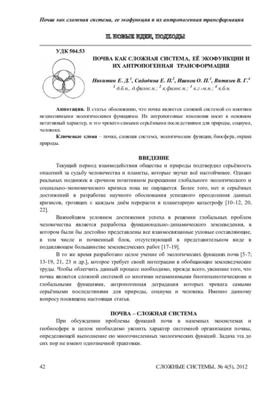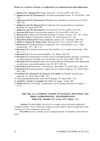 23. Nikitin E.D. Soil as a bio-abiotic polyfunctional system. Eurasian soil Science 34 (Suppl. 1). P. 6-12.