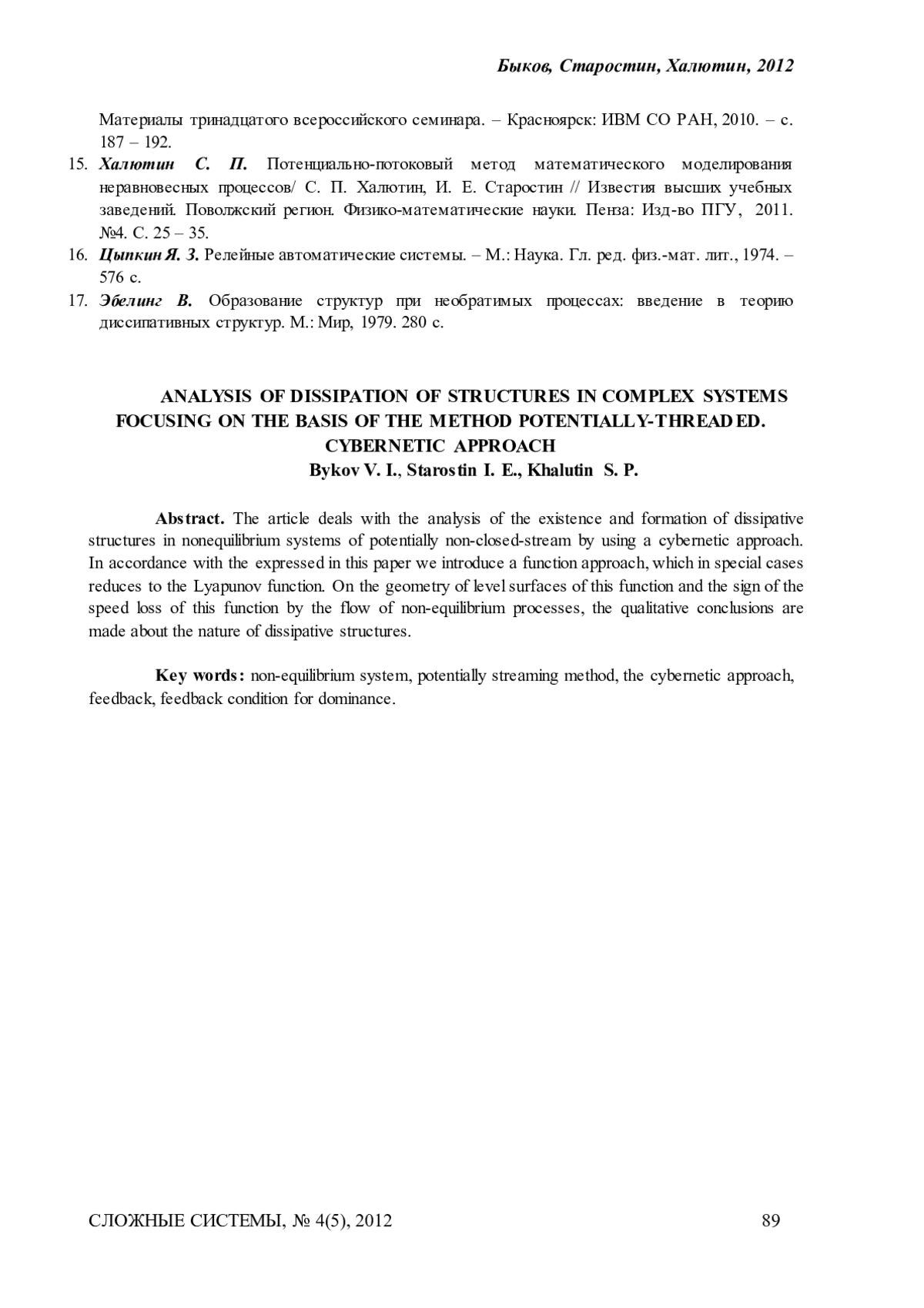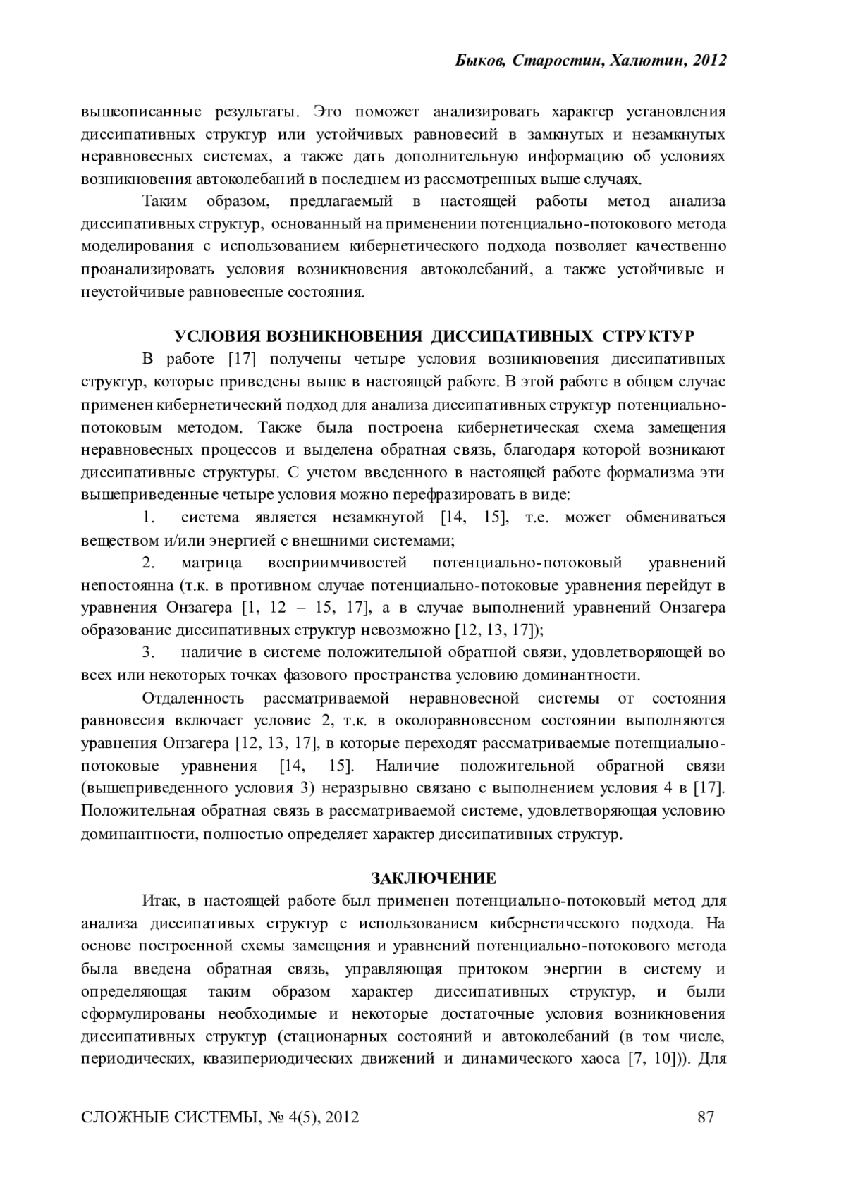 3. Быков В. И. Квазиградиентные модели динамики сложных химических превращений в закрытых системах/ В. И. Быков, И. Е. Старостин // Сложные системы, 2012. № 3(4). С. 59 - 78. EDN: PDSCOH
