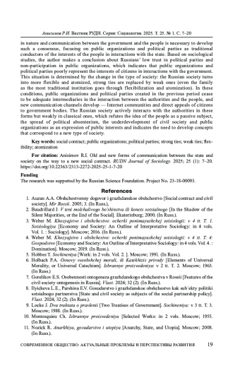 1. Аузан А.А. Общественный договор и гражданское общество // Мир России. 2005. № 3.