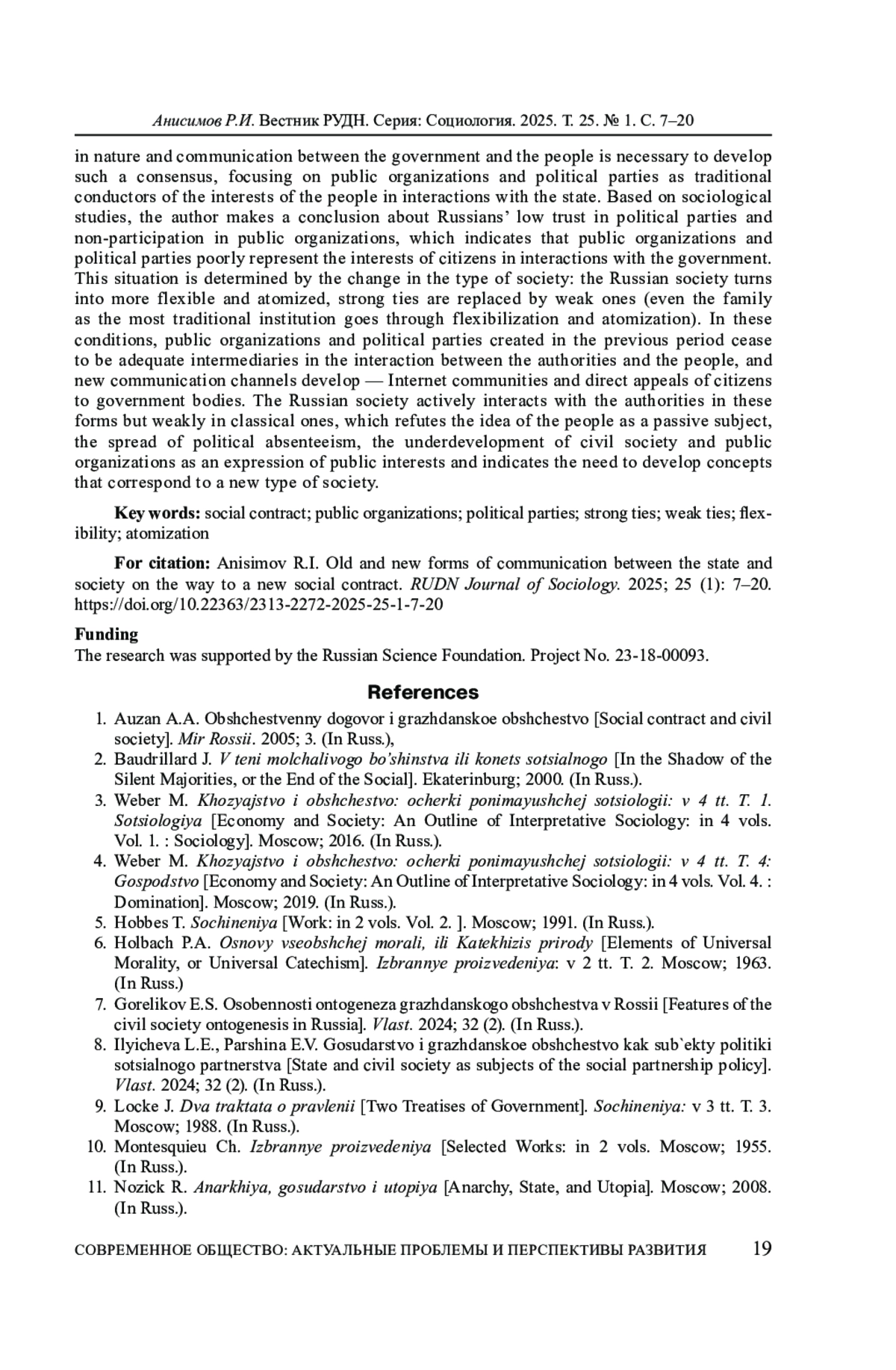 19. Тощенко Ж.Т. Общественный договор в российском исполнении: реальность и уроки // Вестник РГГУ. Серия: Философия. Социология. Искусствоведение. 2023. № 3. EDN: QMUUBE
