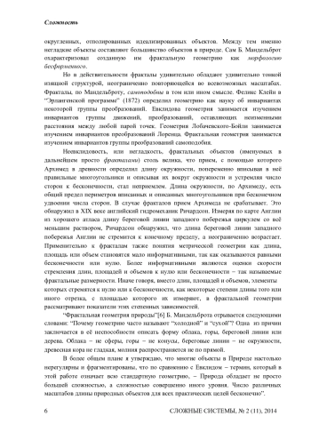 Ключевые фразы: сложность, нелинейная динамика, фракталы, самоподобие