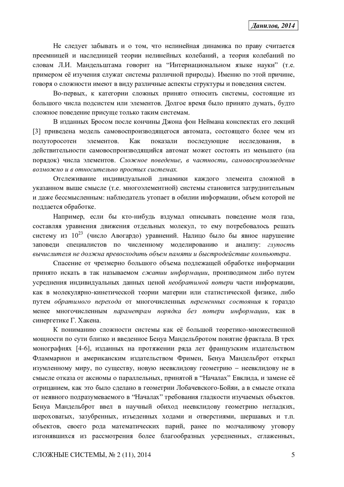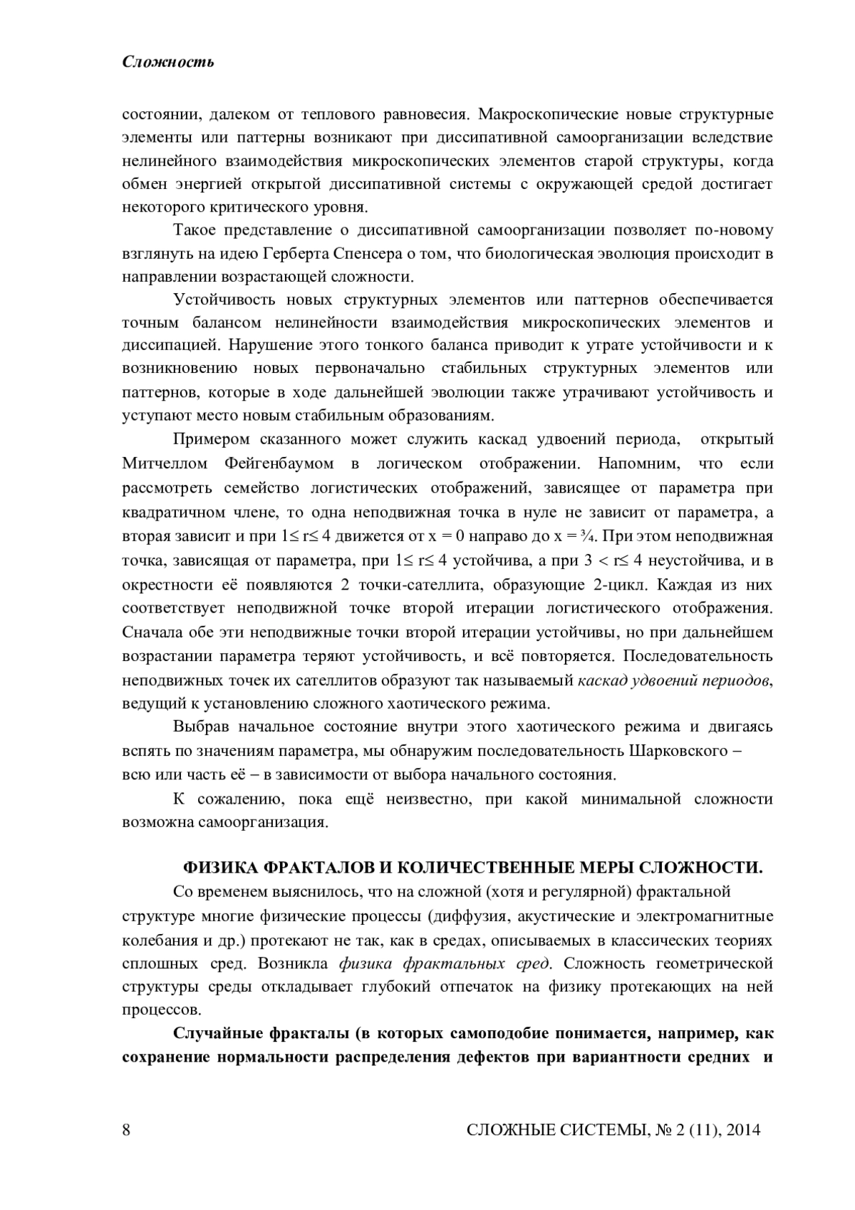 ДАНИЛОВ Ю. А. СЛОЖНОСТЬ // СЛОЖНЫЕ СИСТЕМЫ. 2014. №2 (11)