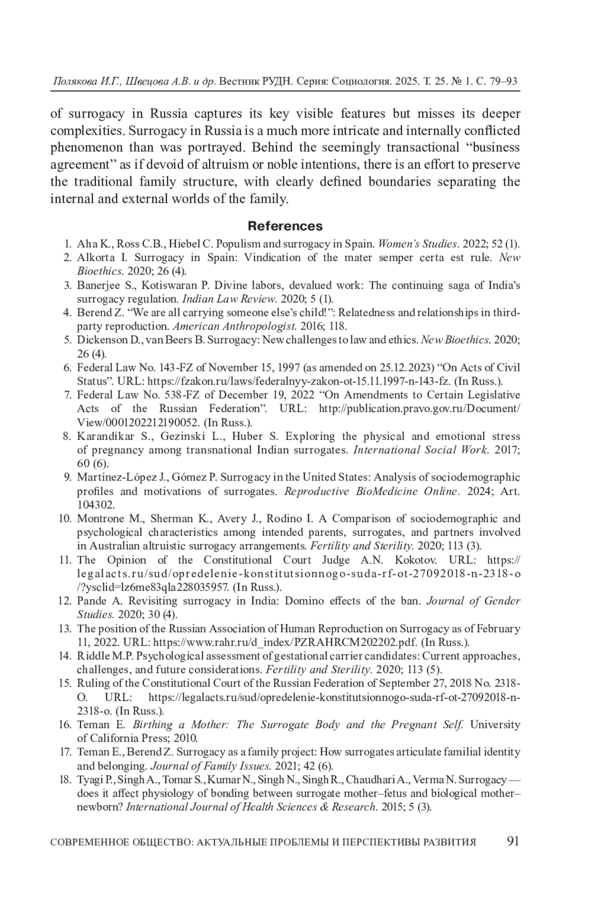 17. Teman E., Berend Z. Surrogacy as a family project: How surrogates articulate familial identity and belonging. Journal of Family Issues. 2021; 42 (6). EDN: TWNTXJ