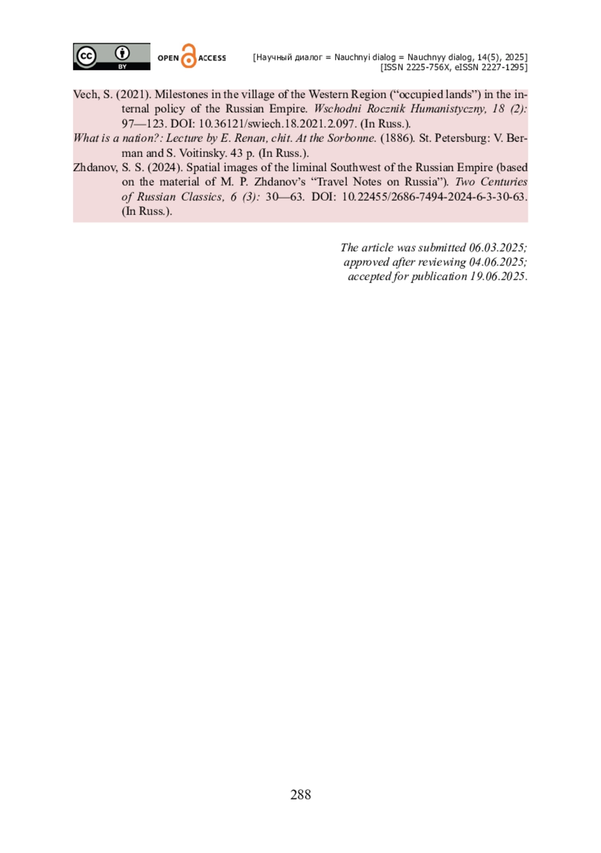 4. Вех С. Западный край («захваченные земли») во внутренней политике Российской империи / С. Вех // Wschodni Rocznik Humanistyczny. - 2021. - T. 18 (2). - C. 97-123. - https://doi.org/10.36121/swiech.18.2021.2.097.