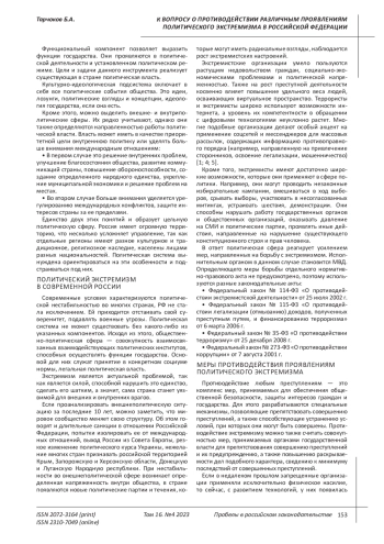 9. Цыганок А.И. Анализ основных видов (форм) проявления экстремистской деятельности в современной России // Евразийский юридический журнал. 2021. № 5 (156). С. 406-407. EDN: EACCDO