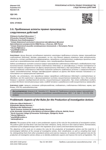 Статья: ПРОБЛЕМНЫЕ АСПЕКТЫ ПРАВИЛ ПРОИЗВОДСТВА СЛЕДСТВЕННЫХ ДЕЙСТВИЙ (2023)
