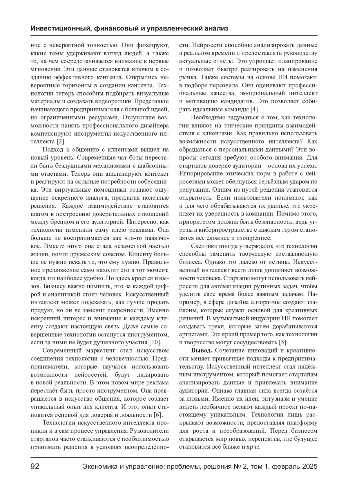 В данной статье рассматривается влияние искусственного интеллекта (ИИ) на развитие стартапов и трансформацию предпринимательства. Особое внимание уделяется тому, как нейросети и другие технологии ИИ изменяют подходы к созданию и управлению бизнесами, улучшая процессы автоматизации, прогнозирования и аналитики. Также анализируются риски и вызовы, с которыми сталкиваются предприниматели в условиях быстрого внедрения технологий ИИ, и предлагаются пути преодоления возможных препятствий. В статье подчеркивается, как ИИ открывает новые возможности для инноваций и ведения бизнеса в условиях глобальной цифровизации.