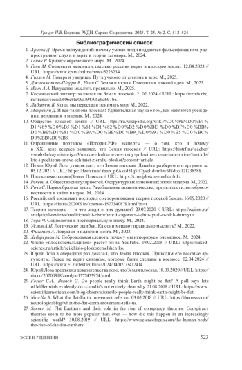 3. Гень М. Социологи выяснили, сколько россиян верят в плоскую землю. 12.04.2023 // URL: https://www.kp.ru/online/news/5223234.