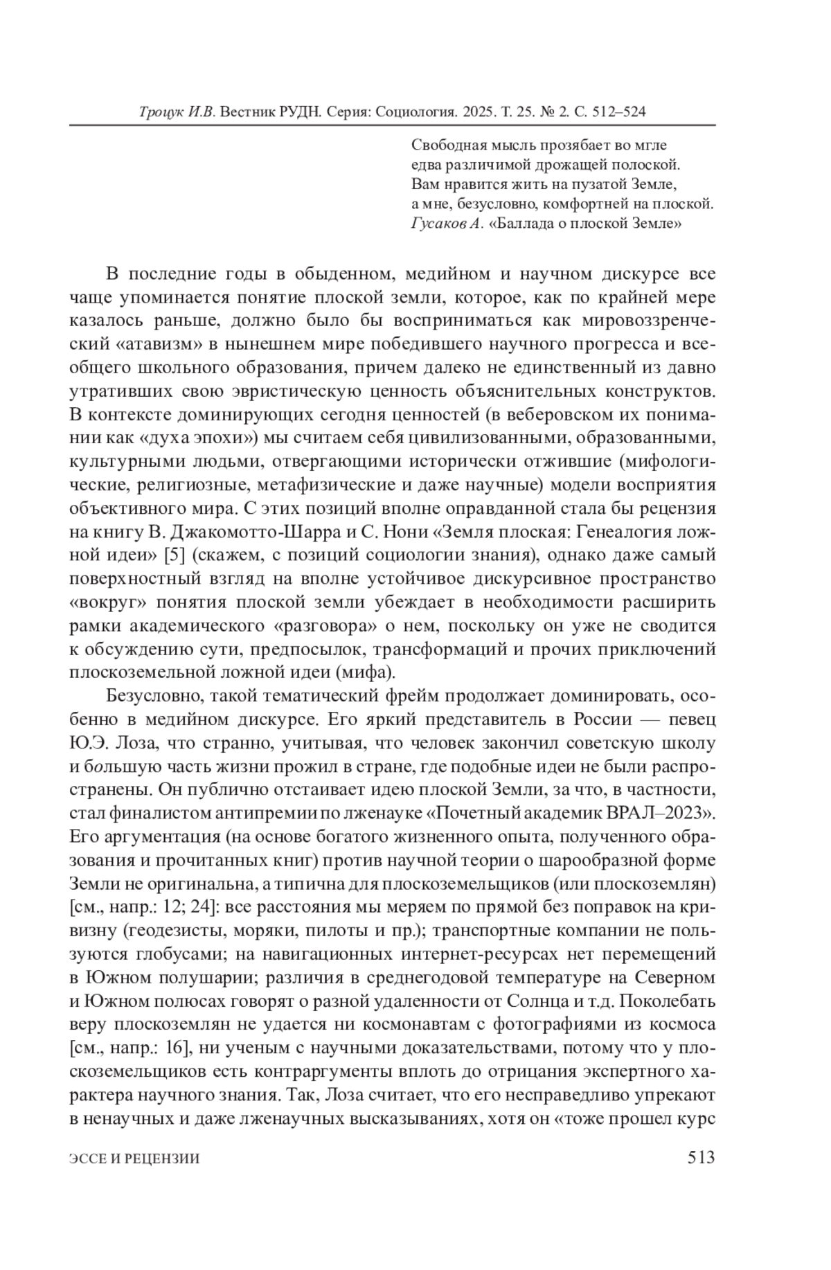 В последние годы в обыденном, медийном и научном дискурсе все чаще упоминается понятие плоской земли, которое, как по крайней мере казалось раньше, должно было бы восприниматься как мировоззренческий «атавизм» в нынешнем мире победившего научного прогресса и всеобщего школьного образования, причем далеко не единственный из давно утративших свою эвристическую ценность объяснительных конструктов.