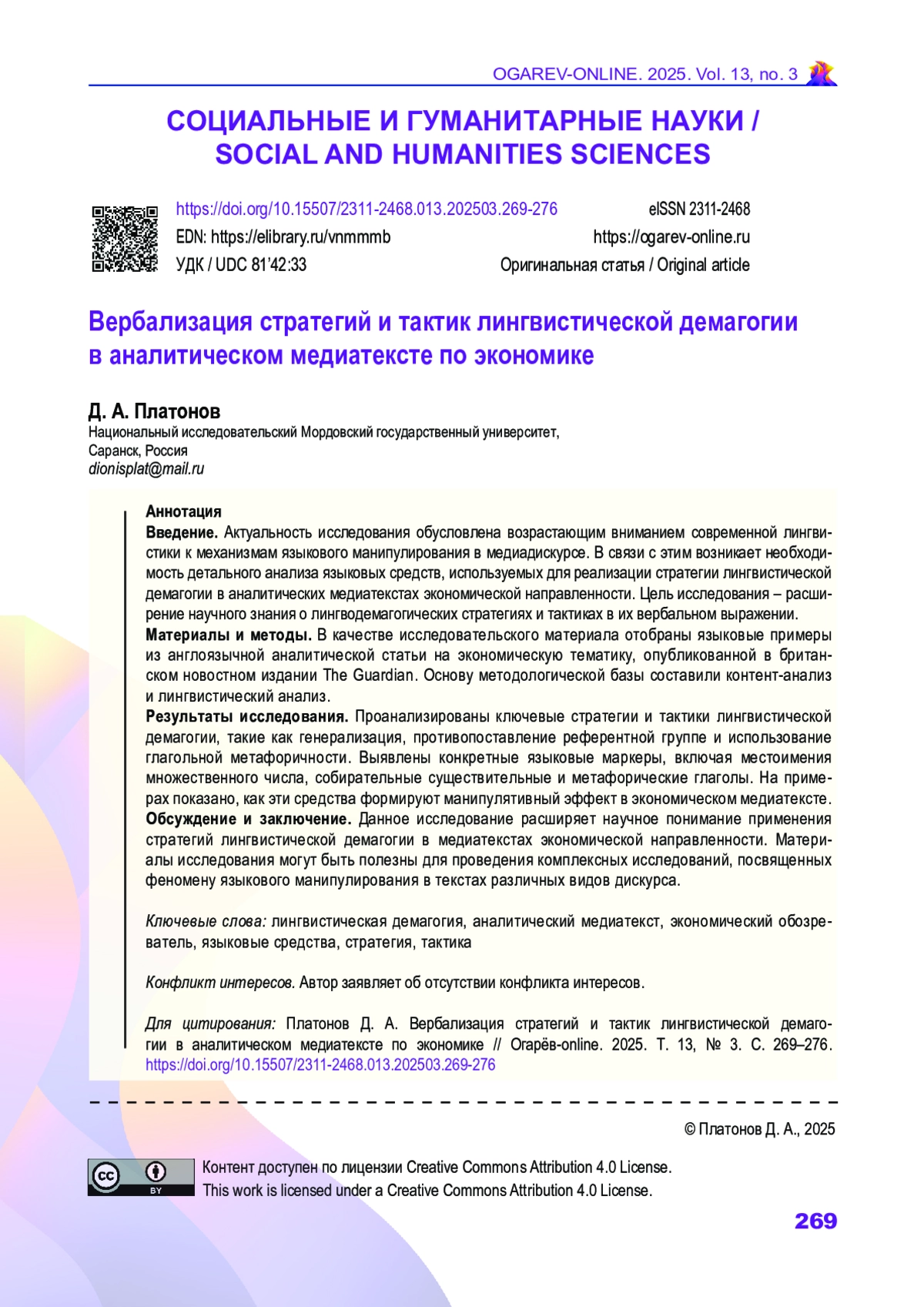 2. Андрюхина Н. В., Четаева М. А. Демагогия как манипулятивная тактика в англоязычных политических текстах // Мир науки. Социология, филология, культурология. 2017. № 4. С. 1-8. URL: https://sfk-mn.ru/PDF/06SFK417.pdf (дата обращения: 01.06.2025).