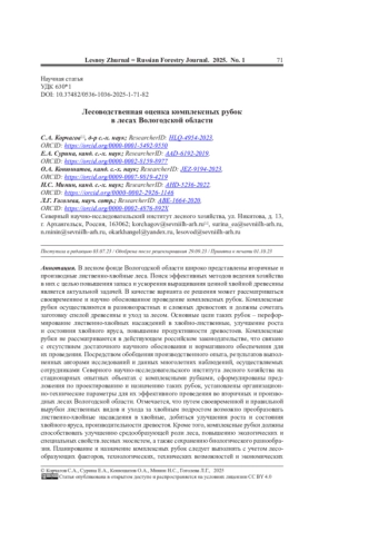 В лесном фонде Вологодской области широко представлены вторичные и производные лиственно-хвойные леса. Поиск эффективных методов ведения хозяйства в них с целью повышения запаса и ускорения выращивания ценной хвойной древесины является актуальной задачей. В качестве варианта ее решения может рассматриваться своевременное и научно обоснованное проведение комплексных рубок. Комплексные рубки осуществляются в разновозрастных и сложных древостоях и должны сочетать заготовку спелой древесины и уход за лесом. Основные цели таких рубок - переформирование лиственно-хвойных насаждений в хвойно-лиственные, улучшение роста и состояния хвойного яруса, повышение продуктивности древостоев. Комплексные рубки не рассматриваются в действующем российском законодательстве, что связано с отсутствием достаточного научного обоснования и нормативного обеспечения для их проведения. Посредством обобщения производственного опыта, результатов выполненных авторами исследований и данных многолетних наблюдений, осуществляемых сотрудниками Северного научно-исследовательского института лесного хозяйства на стационарных опытных объектах с комплексными рубками, сформулированы предложения по проектированию и назначению таких рубок, установлены организационно-технические параметры для их эффективного проведения во вторичных и производных лесах Вологодской области. Отмечается, что путем своевременной и правильной вырубки лиственных видов и ухода за хвойным подростом возможно преобразовать лиственно-хвойные насаждения в хвойные, добиться улучшения роста и состояния хвойного яруса, производительности древостоя. Кроме того, комплексные рубки должны способствовать улучшению средообразующей роли леса, повышению экологических и специальных свойств лесных экосистем, а также сохранению биологического разнообразия. Планирование и назначение комплексных рубок следует выполнять с учетом лесообразующих факторов, технологических, технических возможностей и экономических показателей. Правильный, научно обоснованный подход к проведению комплексных рубок позволит повысить их лесоводственную и экономическую эффективность.