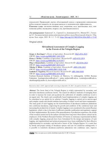 Vokhmintsev V.I. Complex Felling in Mixed Stands of Different Ages. Lesnoy Zhurnal = Russian Forestry Journal, 1995, no.1, pp. 23-26. (In Russ.).