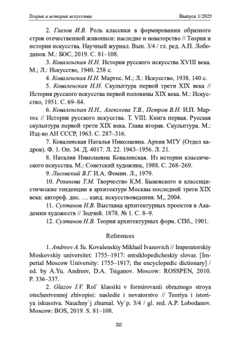 5. Коваленская Н.Н. Скульптура первой трети XIX века // История русского искусства первой половины XIX века. М.: Искусство, 1951. С. 69-84.