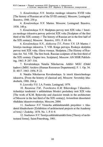 10. Розанова Т.М. Творчество К.М. Быковского и классицистические тенденции в архитектуре Москвы последней трети XIX века: автореф. дис. … канд. искусствоведения. М., 2004. EDN: NHMZQL