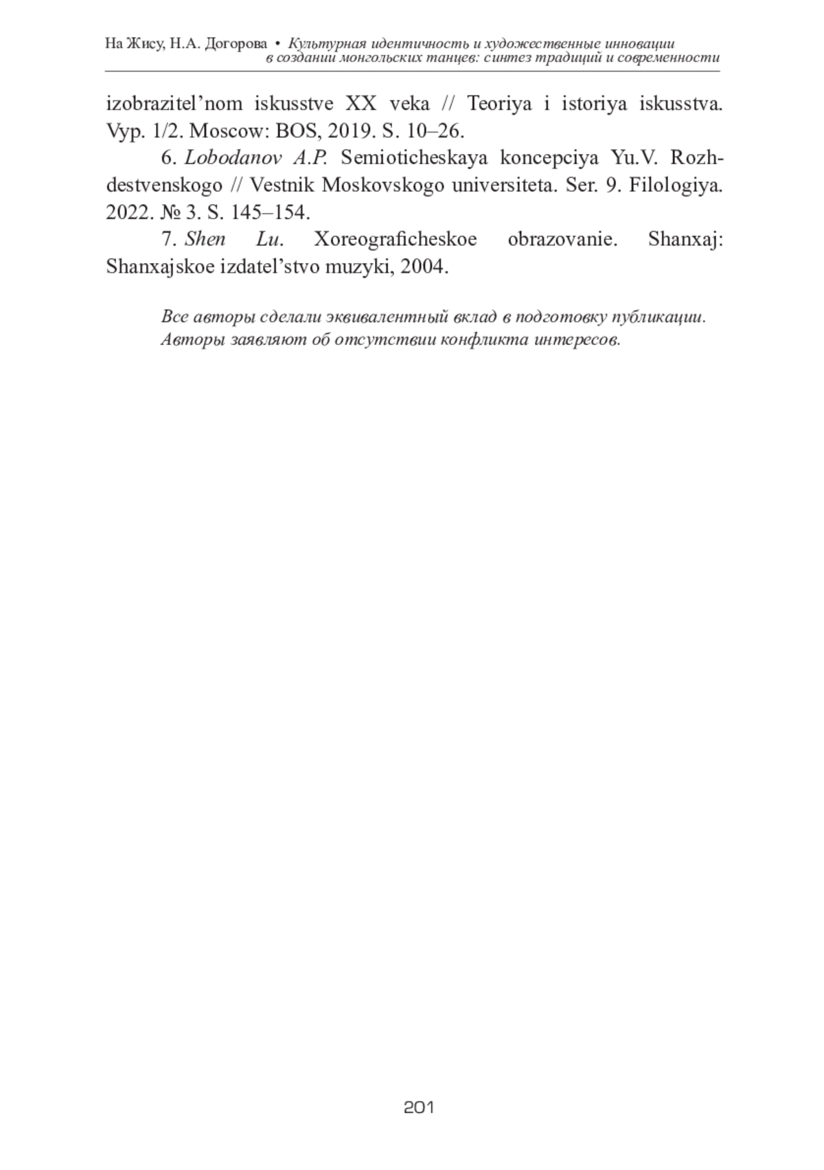 Монгольские танцы, являясь важным нематериальным культурным наследием Китая, демонстрируют уникальную культурную идентичность и гуманитарные художественные ценности монгольского народа. В данной статье рассматривается, как в процессе создания монгольских танцев происходит искусное слияние традиционных и современных элементов, а также влияние этого слияния на культурную идентичность и художественные инновации. Культурная идентичность и художественные инновации в создании монгольских танцев взаимозависимы и взаимно поддерживают друг друга. Благодаря искусному сочетанию традиционных и современных элементов, монгольские танцы сохраняют свою уникальность и одновременно демонстрируют очарование и дух времени. Такой подход к творчеству предоставляет реальный путь для сохранения и развития монгольской культуры, а также служит примером для создания танцев других народов в контексте межкультурного обмена. Монгольское танцевальное искусство, являясь неотъемлемой частью культурного строительства Китая, должно быть тесно связано с ожиданиями партии и государства в отношении культурной деятельности. В процессе создания монгольских танцев следует в полной мере отражать культурную идентичность в формах, содержании, темах и духе. В статье отмечается необходимость учитывать концепции развития современного общества и использовать передовые технологии искусственного интеллекта для всесторонних инноваций, что будет способствовать процветанию монгольских танцев и эффективному сохранению и защите традиционной танцевальной культуры.