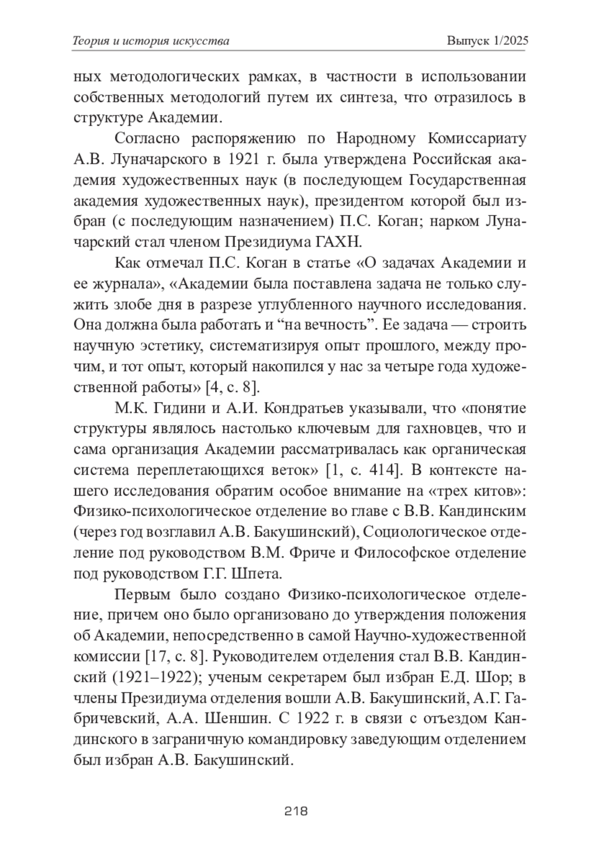 6. Кривцун О.А. 100-летие ГАХН // Художественная культура. 2021. № 4. URL: https://artculturestudies.sias.ru/upload/iblock/f3f/hk_2021_4n_krivtsun.pdf (дата обращения 15.05.2024). С. 1-4.