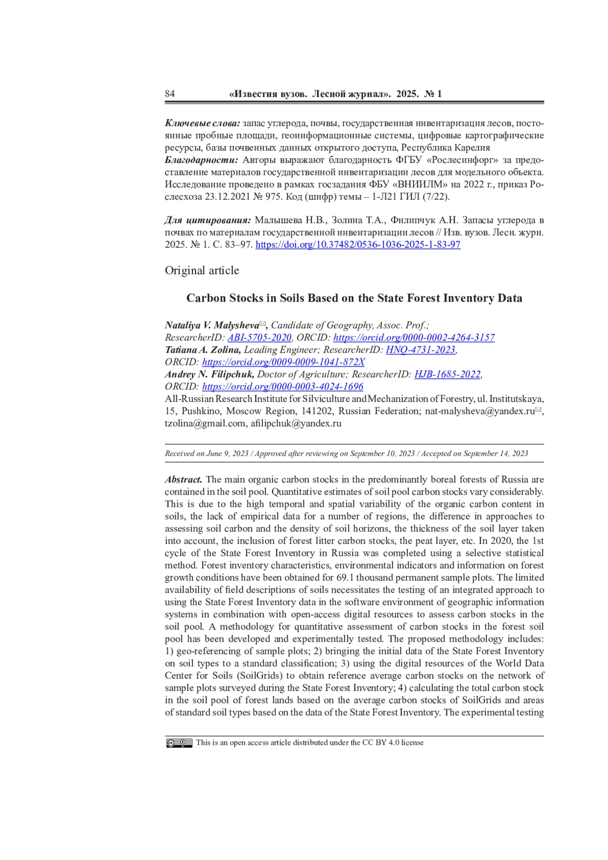 33. Stolbovoi V. Carbon in Russian Soils. Climatic Change, 2002, vol. 55, pp. 131-156. :1020289403835. DOI: 10.1023/A EDN: KWFCZP
