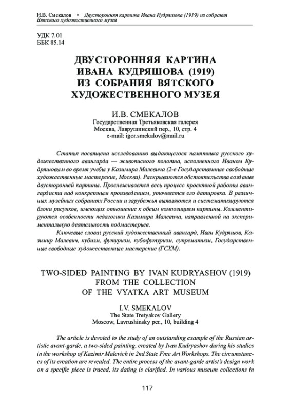 10. Смекалов И.В. Кудряшов Иван Алексеевич // Энциклопедия русского авангарда. Глобал Эксперт энд Сервис Тим, 2013. Т. 1. С. 457-459.