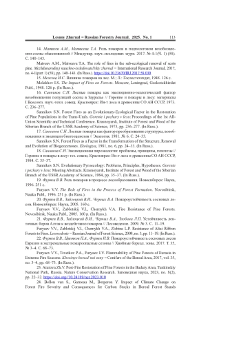 17. Санников С.Н. Лесные пожары как фактор преобразования структуры, возобновления и эволюции биогеоценозов // Экология. 1981. No 6. С. 24-33.