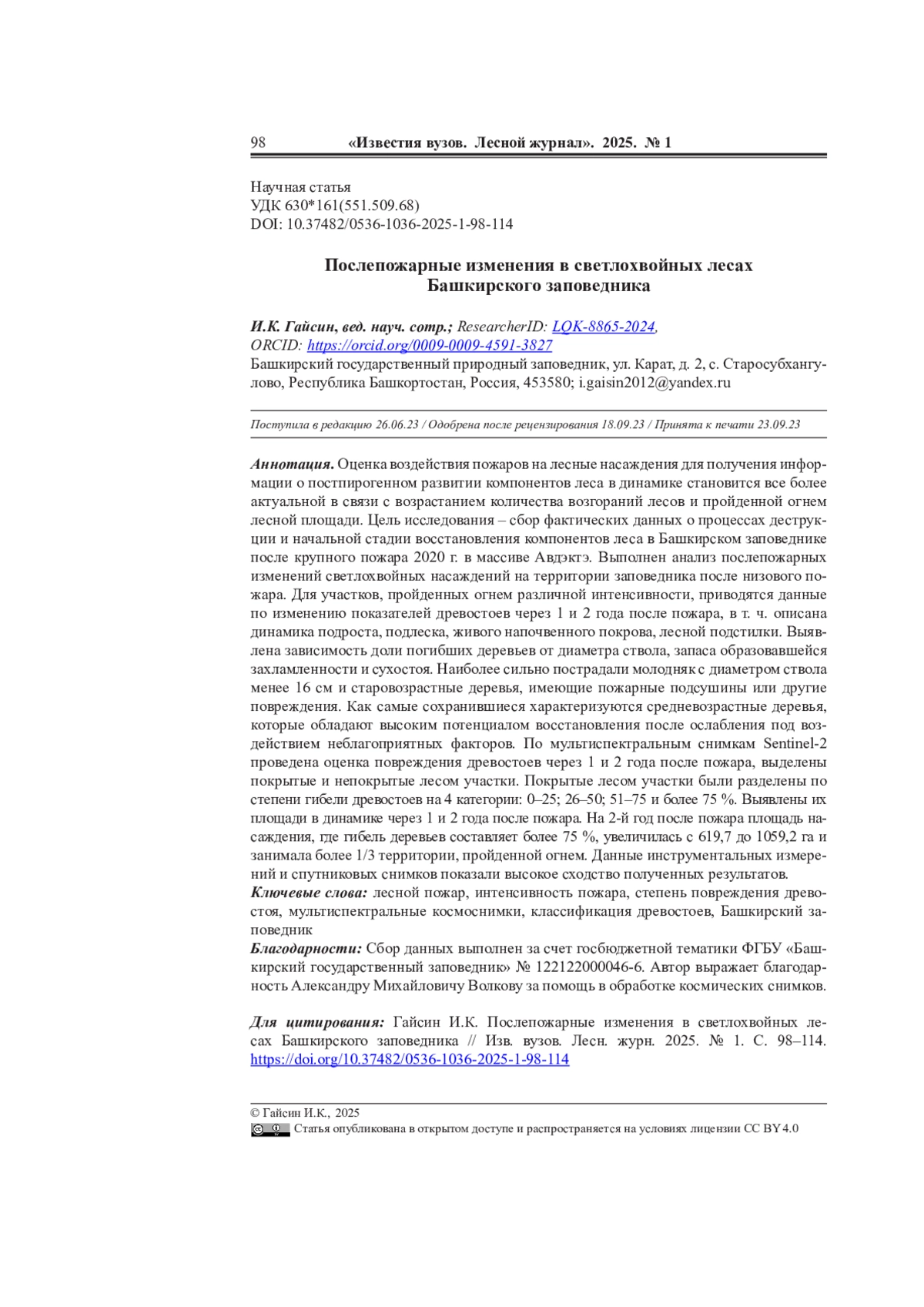 25. Hao B., Xu X., Wu F., Tan L. Long-Term Effects of Fire Severity and Climatic Factors on Post-Forest-Fire Vegetation Recovery. Forests, 2022, vol.13 (6), art. no. 883. DOI: 10.3390/f13060883 EDN: KUOGSQ
