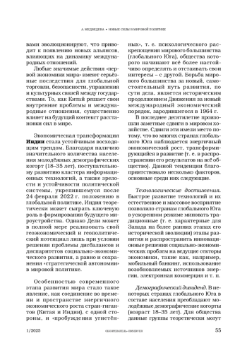 В статье рассматривается проблема появления новых сил/новых игроков в мировой экономике и политике. Автор обращает внимание на активизацию государств мирового большинства, которая прошла в своём развитии несколько этапов. Отмечается скоротечный характер монополярного мира. Становление полицентрического мироустройства рассматривается как развитие логики естественной эволюции мировой экономики и глобальной политики в первой четверти XXI в.